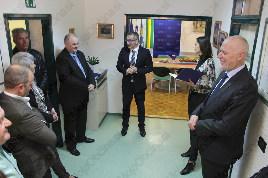 Marko Ferluga, poslanec DZ je skupaj z Milanom Brglezom, podpredsednikom SMC prerezal trak in uradno odprl poslansko pisarno, ki se nahaja v prostorih Občine Kobarid, Trg svobode 2, Kobarid.