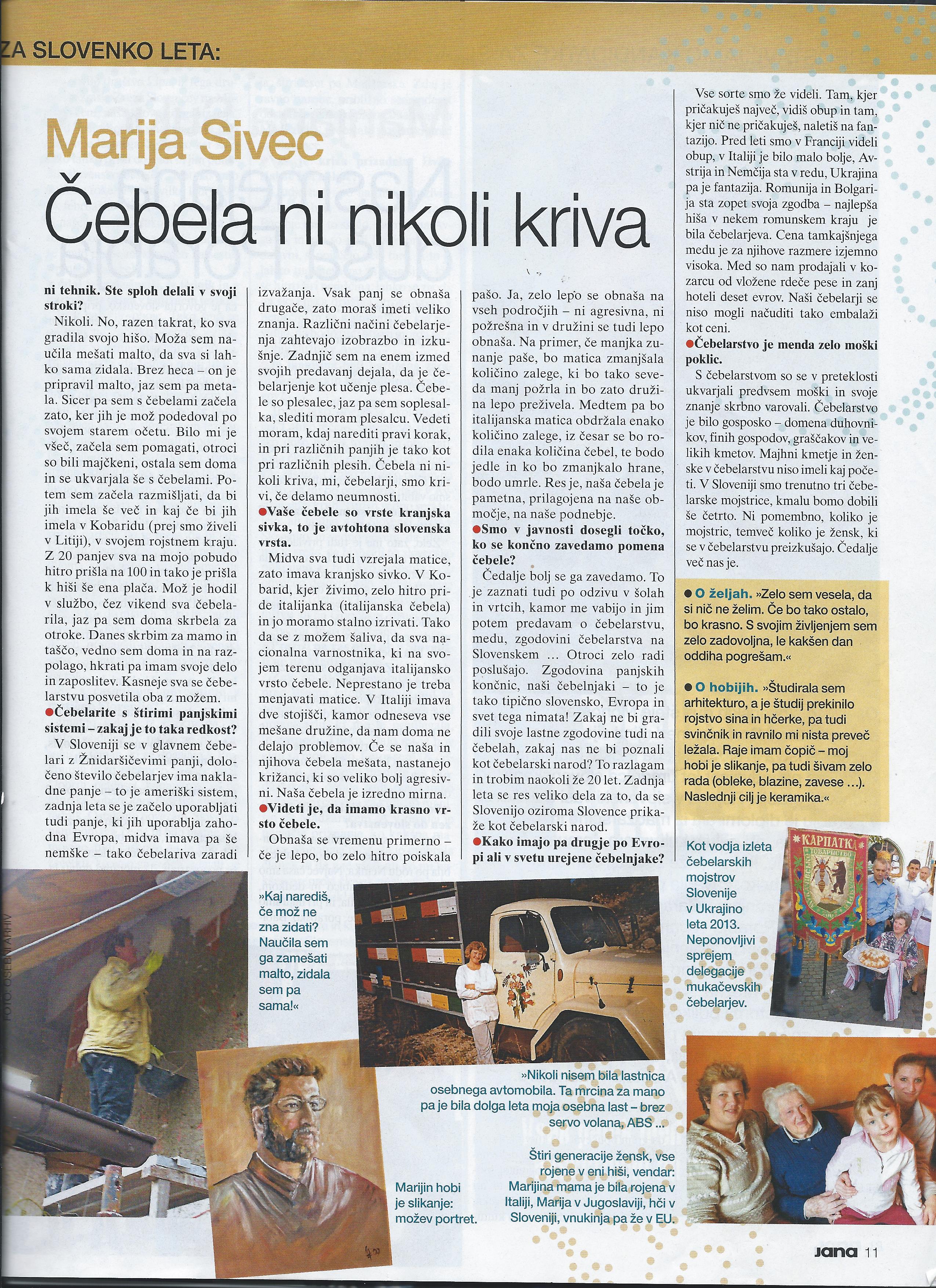 ČZS je uredništvu revije JANA za SLOVENKO LETA, ki jo ta razglaša že več kot 25 let, predlagala čebelarko Marijo Sivec. Uredništvo Jane je kandidatko uvrstilo v ožji izbor desetih finalistk. Zmagovalko bo odločilo glasovanje.