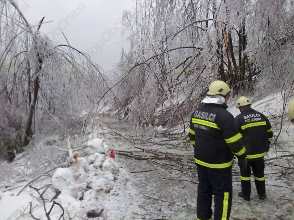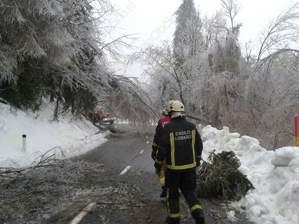 Tudi na Kobariškem imajo že od petka, 31. januarja, štab Civilne zaščite, gasilci in delavci Elektra Primorske polne roke dela, ker sta sneg in žled povzročila veliko škode. Podrta drevesa so zaprla ceste do vasi na Livškem, na Drežniškem, do Breginjskega kota in do vasi pod Krnom.