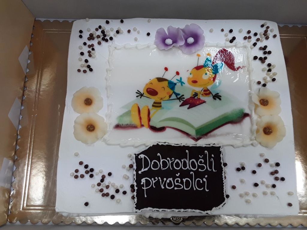 Praznovanja brez sladkega presenečenja seveda ni. Prvošolčkova torta je otroke razveselila v njihovih matičnih učilnicah, ki so jih njihove učiteljice posebej praznično pripravile.