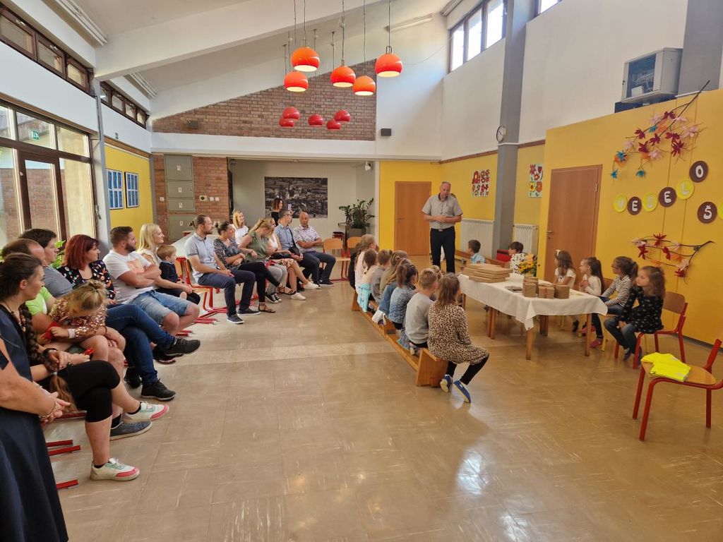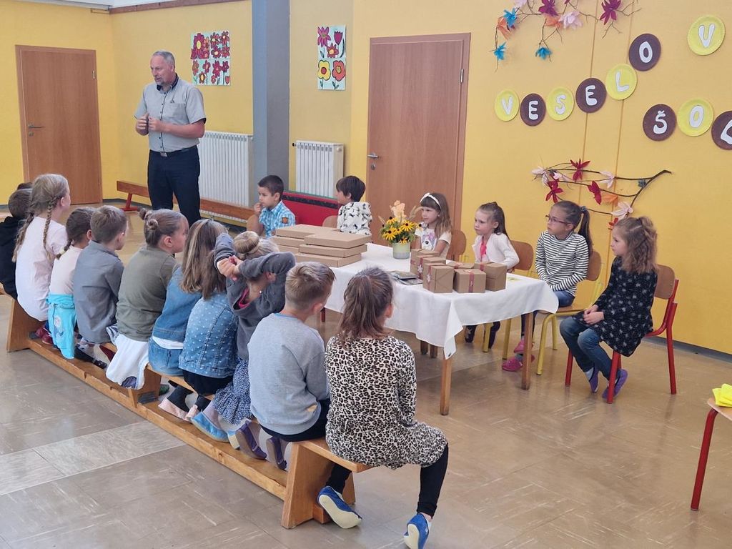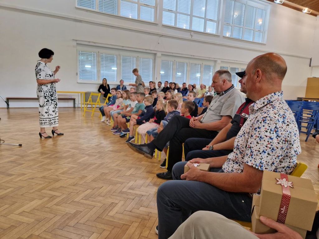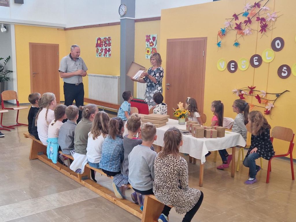 Občina Kobarid je vsem prvošolkam in prvošolčkom podarila slovensko zastavo, državno himno Zdravljica in pesem Slovenec sem, odsevni brezrokavnik za varnost v prometu in letno premijo nezgodnega zavarovanja. Občinski redar Vojko Fon je v imenu Sveta za preventivo in vzgojo v cestnem prometu Občine Kobarid zbrane spodbudil k varnemu ravnanju v prometu. Otroci so se razveselili sirčka Prvošolček Mlekarne Planika. Ob tej priložnosti je zbrane nagovoril tudi direktor mlekarne Miran Božič. Prvi šolski dan je seveda poseben dan, zato so otrokom, ki so pravkar postali šolarke in šolarji, za lepši vstop v novo obdobje pripravili tudi predstavo.