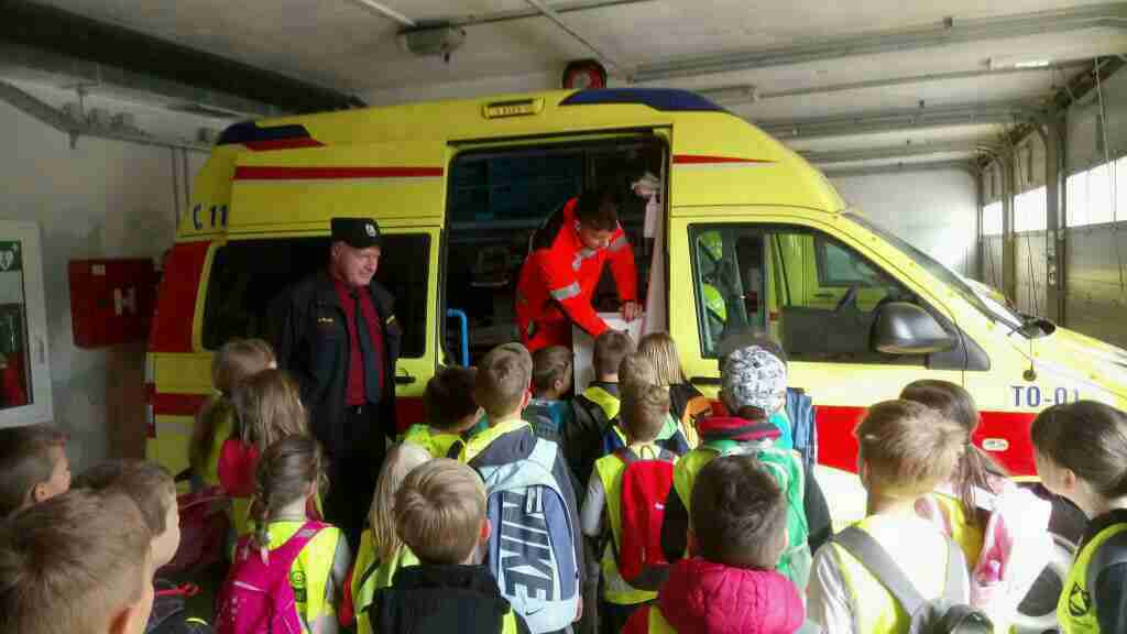 Osnovnošolci so si ogledali tudi reševalno postajo Tolmin, kjer so jim reševalci prikazali notranjost reševalnega vozila in reševalno opremo.
