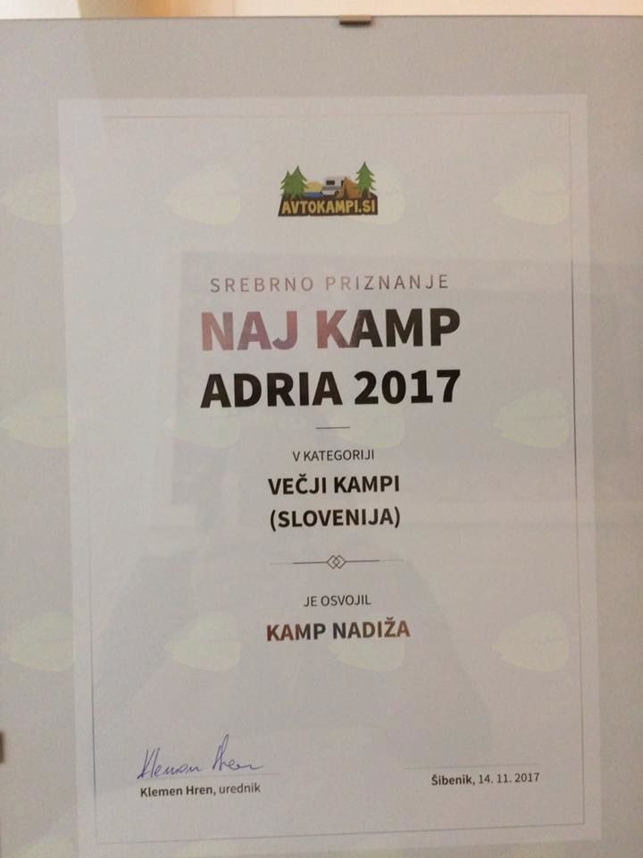 Kamping portal Avtokampi.si vsako leto organizira izbor Naj kamp Adria, v katerem kampisti glasujejo za najboljše kampe v Sloveniji in na Hrvaškem. Podelitev nagrad je potekala v okviru 11. Hrvaškega kamping kongresa v Šibeniku, ki se ga je udeležilo več kot 300 predstavnikov kampov in strokovne turistične javnosti iz celotne Evrope, na ogled pa so bile tudi mobilne hišice in glamping šotori.