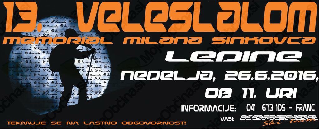 Tradicionalni veleslalom v spomin na prvega predsednika SK Komenda Milana Šinkovca na Ledinah nad Jezerskim. V nedeljo 26.6. 2016 bo tovorna žičnica delovala od 7:00 do 7:30. Če bi se kdo rad pridružil že v soboto, se informirajte na spodnji telefonski številki. Informacije: 041 673 105 (Franc).