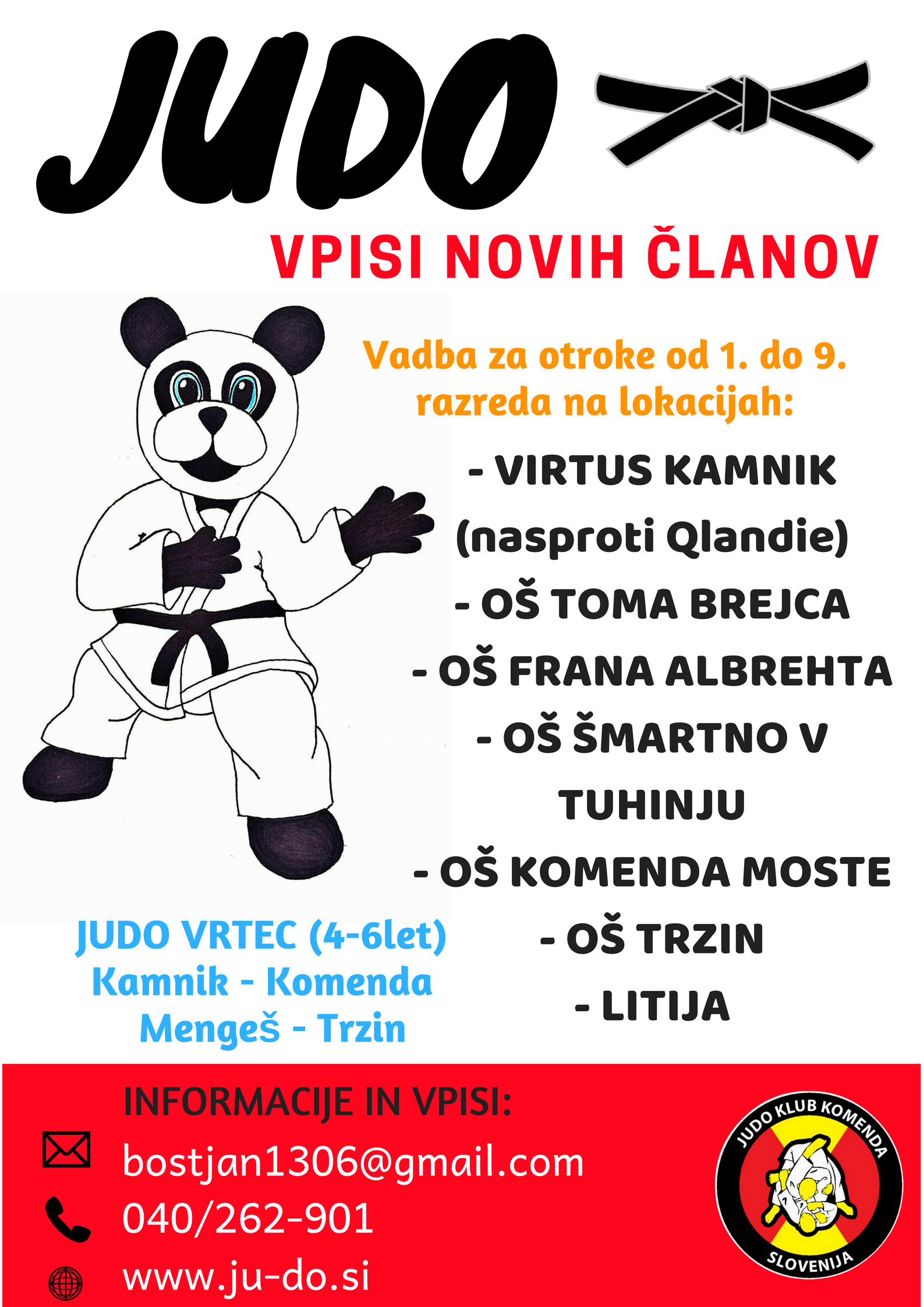 NOVI VPISI otrok vse programe JUDO KLUBA KOMENDA, na vseh naših lokacijah: