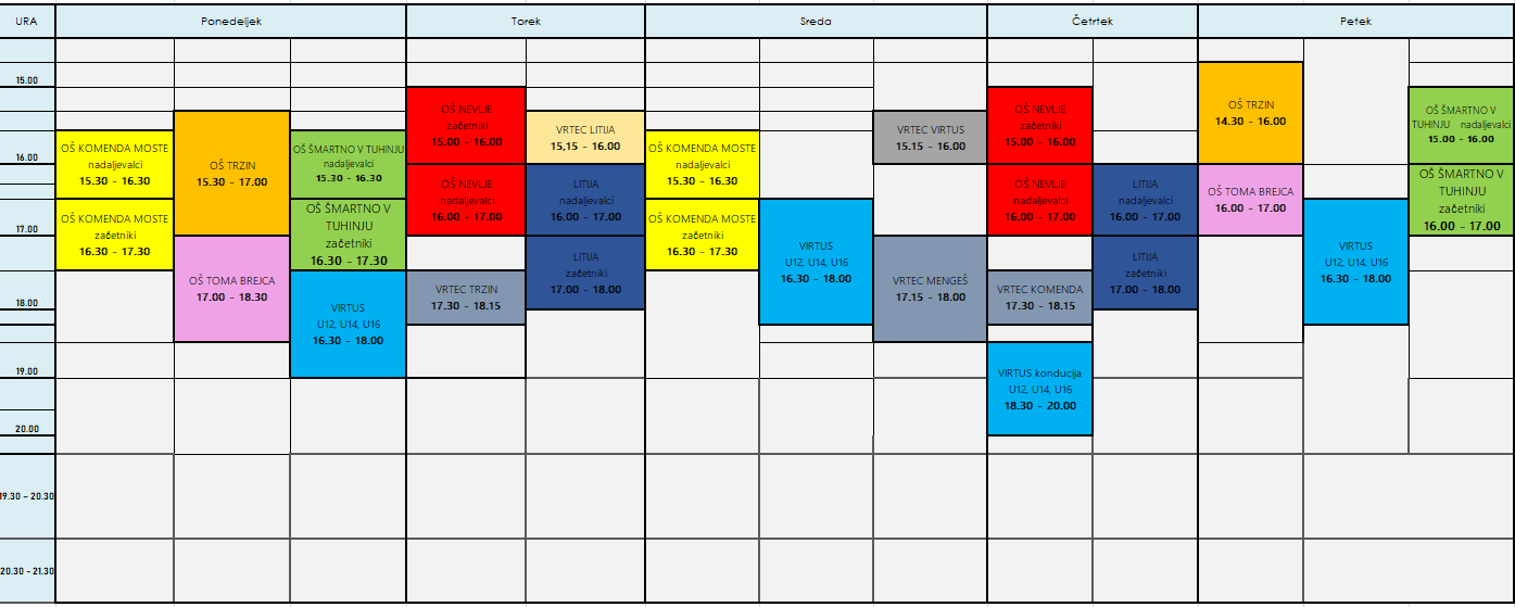 VIRTUS (nasproti QLANDIE KAMNIKA); ponedeljek, sreda in petek: 16.30 - 18.00