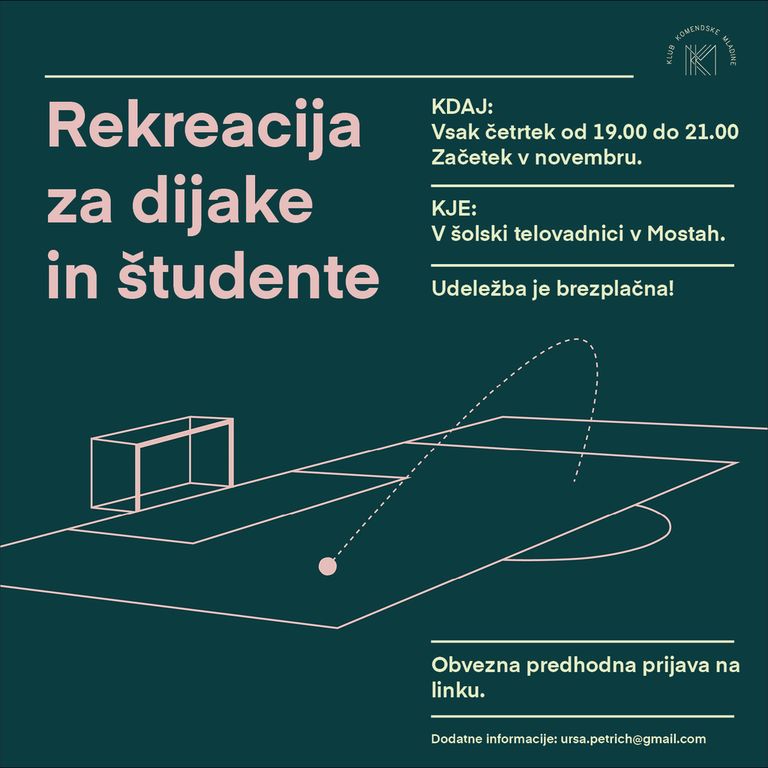 Zate imamo rešitev: REKREACIJA ZA MLADINO v telovadnici šole v Mostah pri Komendi.