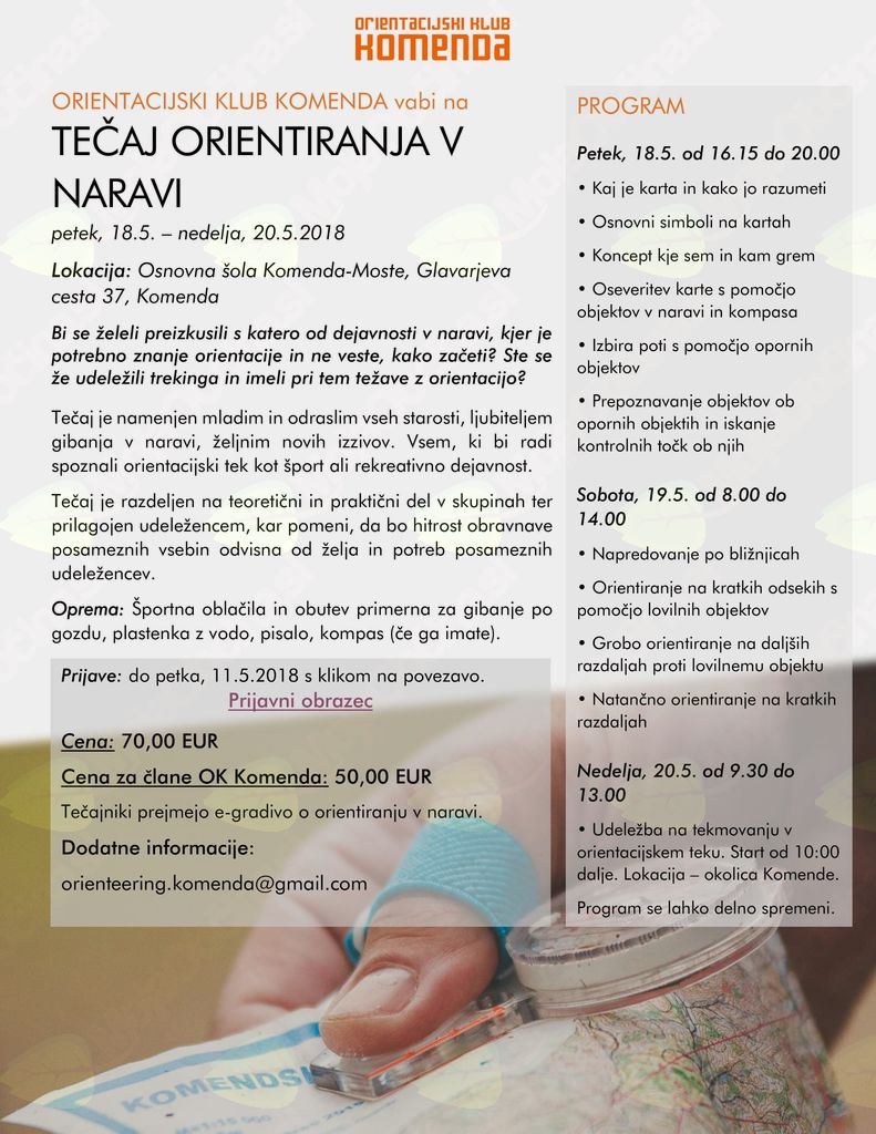 Zainteresirani vabljeni k prijavi do petka 11.5.2018 preko povezave na spletni strani https://www.ok-komenda.si/