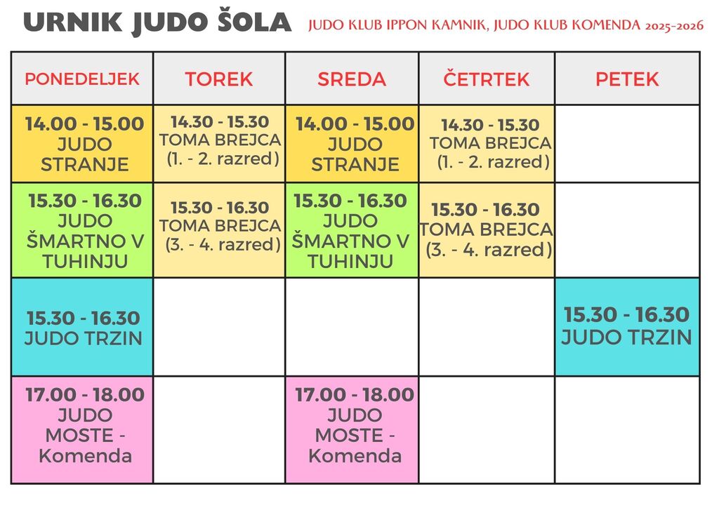 Vpisi v JUDO sezona 2025/2026 - JUDO KLUB KOMENDA