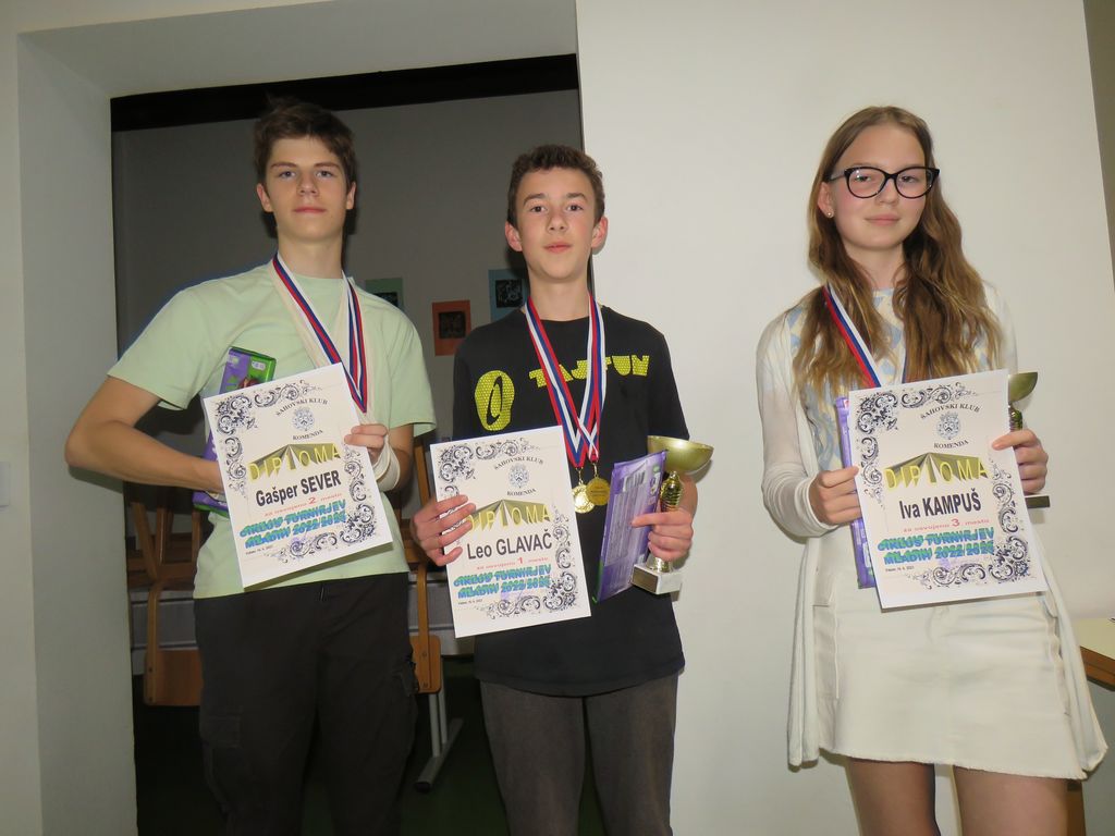 V posamezni konkurenci pa so bili najboljši: Med dekleti je bila najboljša Iva Kampuš (oš Janka Modra, ŠK Dol pri Ljubljani), sledita Taja Levstik (oš Zbora odposlancev Kočevje, ŠD Kočevje) in Neja Auersperger Bandalo (oš Janka Modra, ŠK Dol pri Ljubljani). Med dekleti do 15 let je bila najboljša Ajda Ručigaj (oš Janka Kersnika Brdo), sledi Neja Levstik (oš Zbora odposlancev Kočevje, ŠD Kočevje). Med dečki do 15 let je bil najboljši Luka Petrušič (oš Nove Jarše), sledita Juš Povirk (oš Janka Modra, ŠK Dol pri Ljubljani) in Jure Čož (oš Louisa Adamiča Grosuplje). Med dečki do 14 let je bil najboljši Leo GLAVAČ (oš Riharda Jakopiča, Tajfun - ŠK Ljubljana), sledita Gašper Sever (oš Brezovica, ŠK Vrhnika) in Stanko Perme (oš Komenda – Moste, ŠK Komenda). Med dekleti do 13 let je bila najboljša Iva Kampuš (oš Janka Modra, ŠK Dol pri Ljubljani), sledita Taja Levstik (oš Zbora odposlancev Kočevje, ŠD Kočevje) in Inti Maček (oš Frana Albrehta Kamnik, ŠK Komenda). Med dečki do 13 let je bil najboljši Adam Mihič (oš Primož Trubar Velike Lašče, ŠD Kočevje), sledita Jure Hlebec (oš dr Franceta Prešerna Ribnica, ŠD Kočevje) in Fran Babarovič (oš Martina Krpana, ŠK Komenda). Med dekleti do 12 let je bila najboljša Neja Auersperger Bandalo (oš Janka Modra, ŠK Dol pri Ljubljani), sledita Anja Beber (oš Antona Globočnika, ŠK Postojna) in Sofia Timagina (oš Mengeš, ŠD Domžale). Med dečki do 12 let je bil najboljši Vid Kampuš (oš Janka Modra, ŠK Dol pri Ljubljani), sledita Lojze Perme (oš Komenda – Moste, ŠK Komenda) in Blaž Repek (oš Janka Modra, ŠK Dol pri Ljubljani). Med dekleti do 11 let je bila najboljša Alisa Gubina (oš Ljubljana, ŠD Domžale), sledi Mirjam Grošelj (oš Rodica, ŠD Domžale). Med dečki do 11 let je bil najboljši Jakob Kovačič (oš Sostro, Tajfun - ŠK Ljubljana), sledita Maksim Kartashov (oš Milana Šuštaršiča, ŠD Mengeš – Trzin) in Tobi Horvat (oš Zbora odposlancev Kočevje, ŠD Kočevje). Med dekleti do 10 let je bila najboljša Lucija Ronja Nanjara (oš Zbora odposlancev Kočevje, ŠD Kočevje). Med dečki do 10 let je bil najboljši Peter Mihič (oš Primož Trubar Velike Lašče, ŠD Kočevje), sledita David krstič (oš Kolezija) in Tadej Tomažin Košorok (oš Prule, Tajfun - ŠK Ljubljana). Med dečki do 9 let je bil najboljši Nikita Kartashov (oš Milana Šuštaršiča, ŠD Mengeš – Trzin), sledita Miha Medved (oš Trnovo, Tajfun - ŠK Ljubljana) in Karl Zmaj Mladenovič (oš Danile Kumar, Tajfun - ŠK Ljubljana). Med dekleti do 8 let je bila najboljša Zara Zupančič (oš Miroslava Vilharja, ŠK Postojna). Med dečki do 8 let je bil najboljši Nikolaj Praznik (oš Brezovica, ŠD Vrhnika), sledita Florjan Sever (oš Brezovica) in Rok Kragelj (oš Pivka, ŠK Postojna).