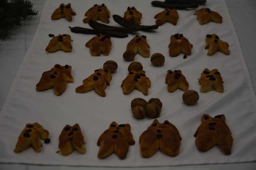 Po predavanju in živahni razpravi smo vsi skupaj pod vodstvom gospe Branke zapeli pesem Na planincah sončece sije, si ogledali trniče in pisave zanje, nato pa pokusili Miklavževe dobrote. Vsem so zelo teknile.