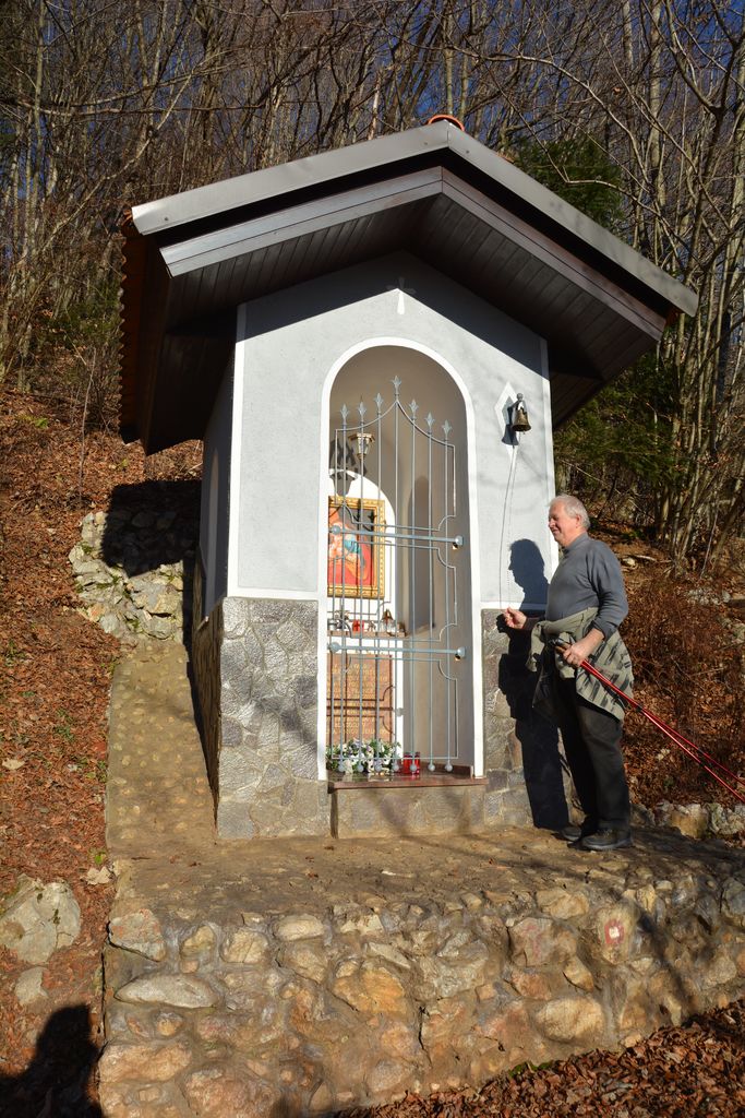 Prenekateri ljubitelj narave in jaslic med potjo iz Poženika na Šenturško Goro tudi pozvoni pri lepo obnovljeni kapelici, za katero ima velike zasluge prejšnji komendski župnik Zdravko Žagar (napis na marmorni plošči pove, s kakšnim namenom je bila postavljena), ter se priporoči brezjanski Mariji Pomagaj. V kapelici je namreč njena podoba.