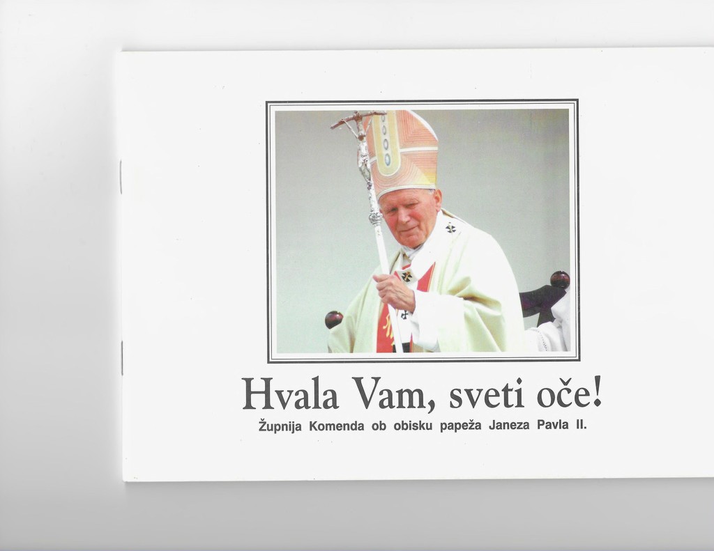 Ko se na binkošti popoldne – na »malo veliko noč« – spominjam tridnevnega obiska papeža Janeza Pavla II. v Sloveniji (od 17. do 19. maja 1996), mi prihajata na misel predvsem dve besedi: HVALEŽNOST in DOLŽNOST. Hvaležnost, da je prišlo do tega obiska, dolžnost pa, da živim(o) iz tega, kar nam je omenjeni papež, že svetnik, »položil na srce« v svojih govorih in nagovorih pri množičnih srečanjih z njim v Ljubljani, pri Postojni in v Mariboru ter drugje.