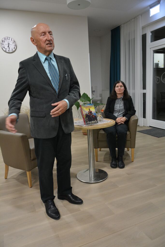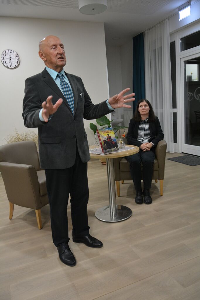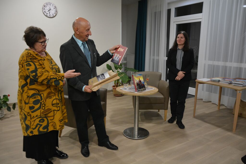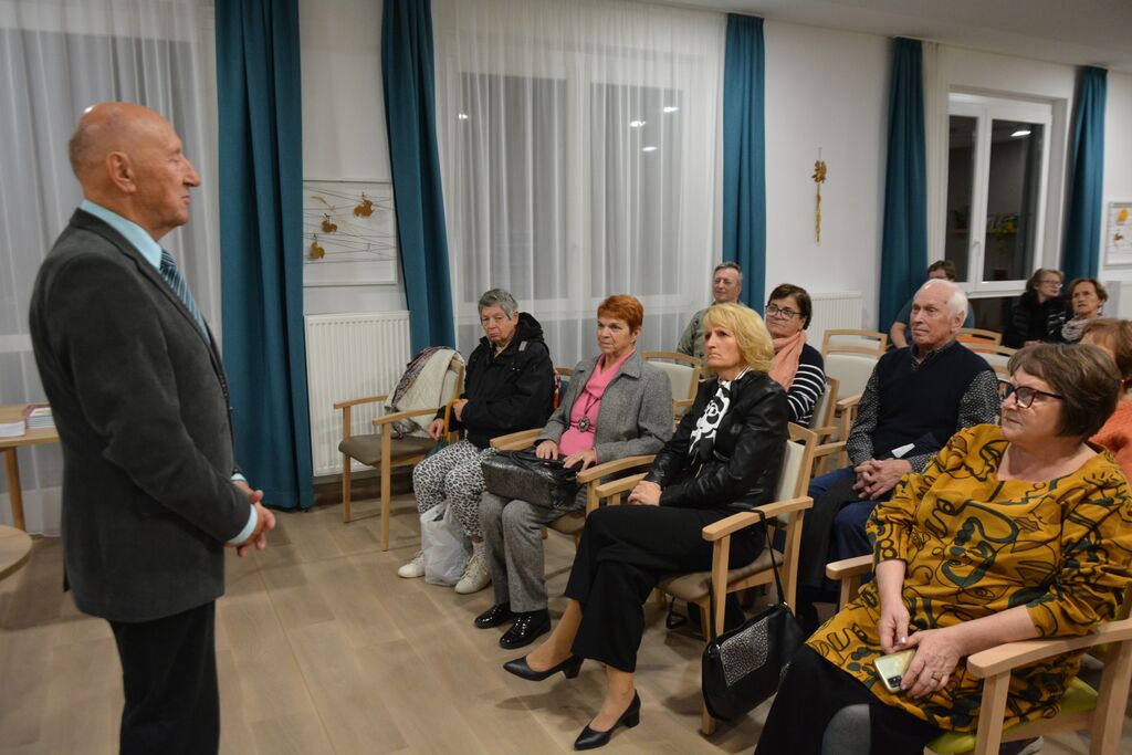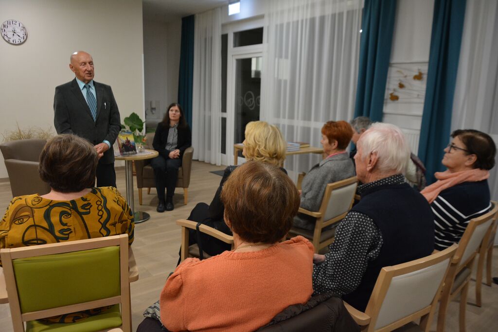 V njegovo gostovanje v Domu SeneCura je uvedla tajnica UPPG bibliotekarka Lucija Miklič Cvek, s pisateljem se je vešče in celo malce provokativno pogovarjala prostovoljka te ustanove Ana Žabkar Šalič, profesorica slovenščine na OŠ Cerklje na Gorenjskem. Z zelo okusnim pecivom in čajem sta postregla zakonca Hace, prav tako prostovoljca UPPG.