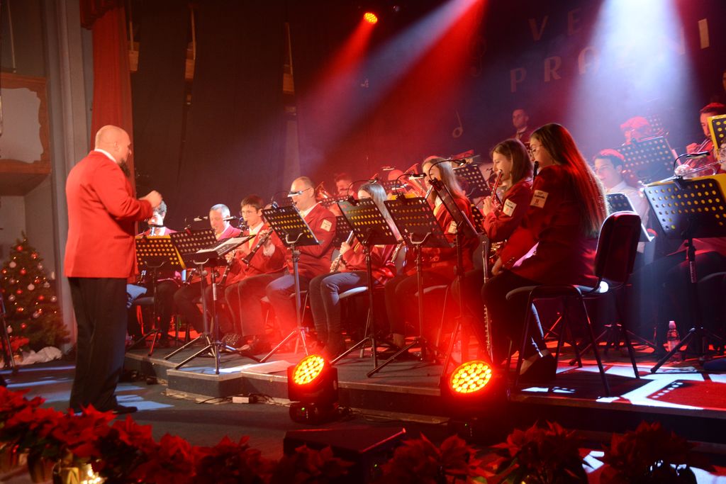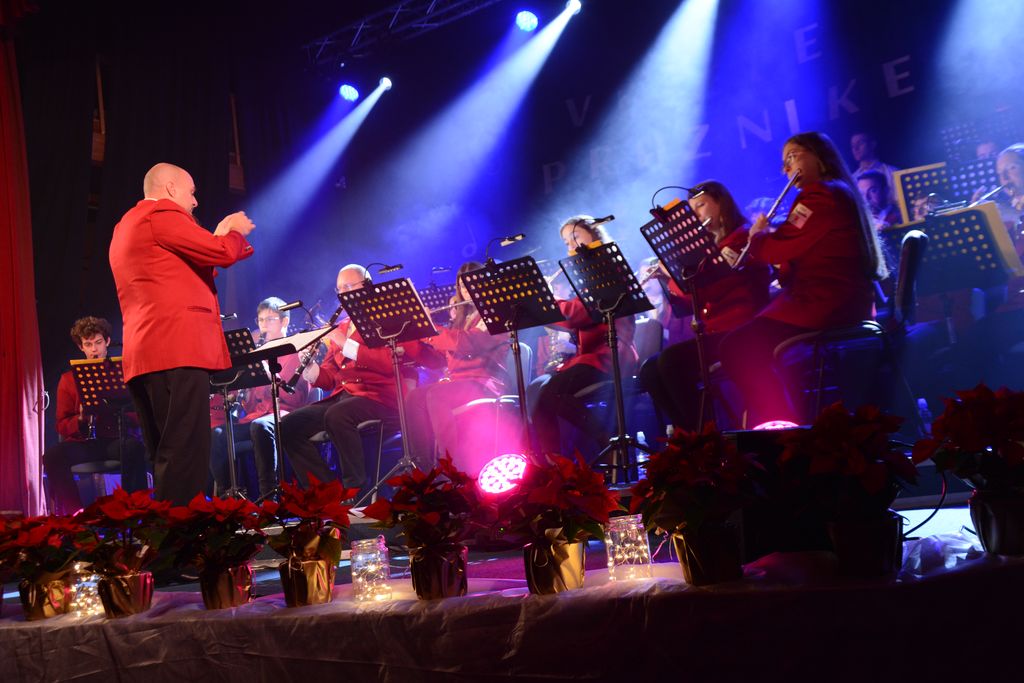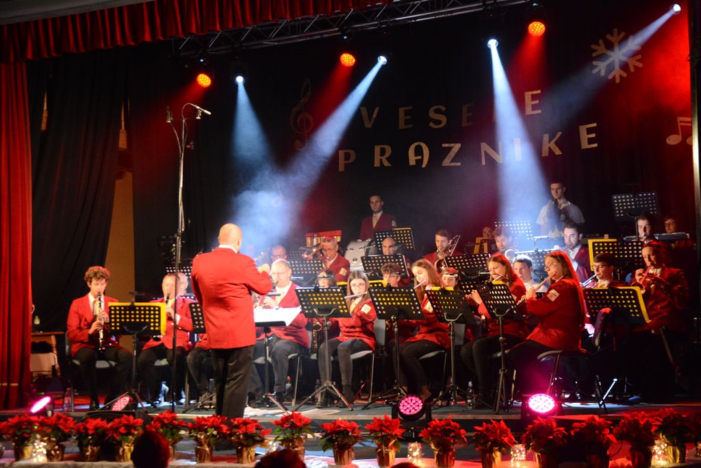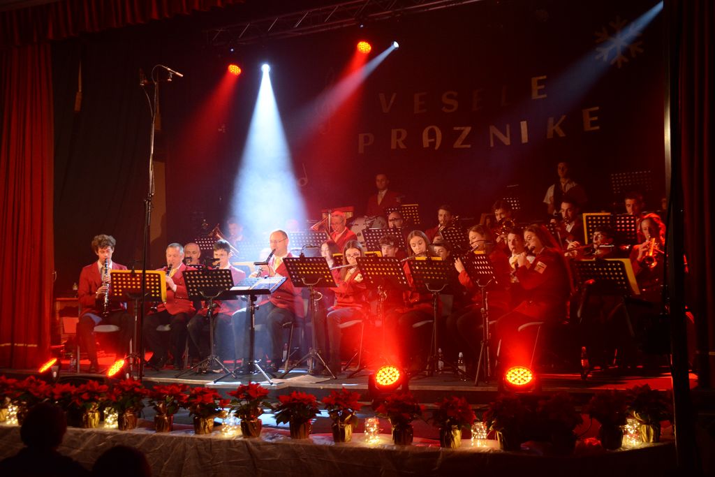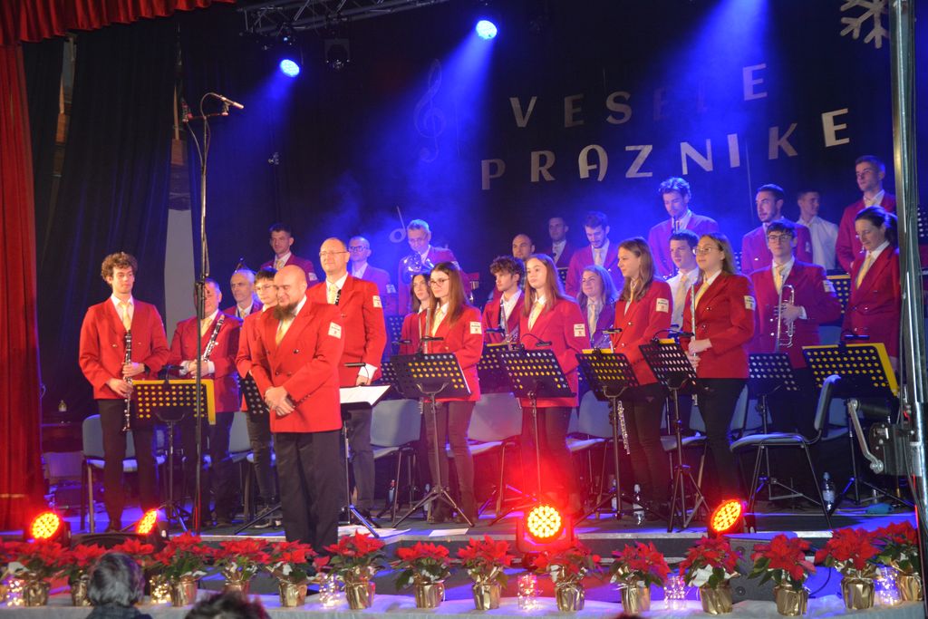 Godba Komenda je na lepo okrašenem odru z voščilnim napisom VESELE PRAZNIKE, okrašeno novoletno smrečico, snežinkami in, kot se za takšen glasbeni sestav spodobi, notami, zaigrala »bolj znane in manj znane melodije in čarobne tone«. Za začetek Komendsko koračnico skladatelja in ustanovitelja godbe Primoža Kosca, nato enajst domačih in tujih skladb. Močno navdušeni obiskovalci so po teh izvabili iz godbenikov pod taktirko dirigenta Petra Šale še tri dodatne skladbe.