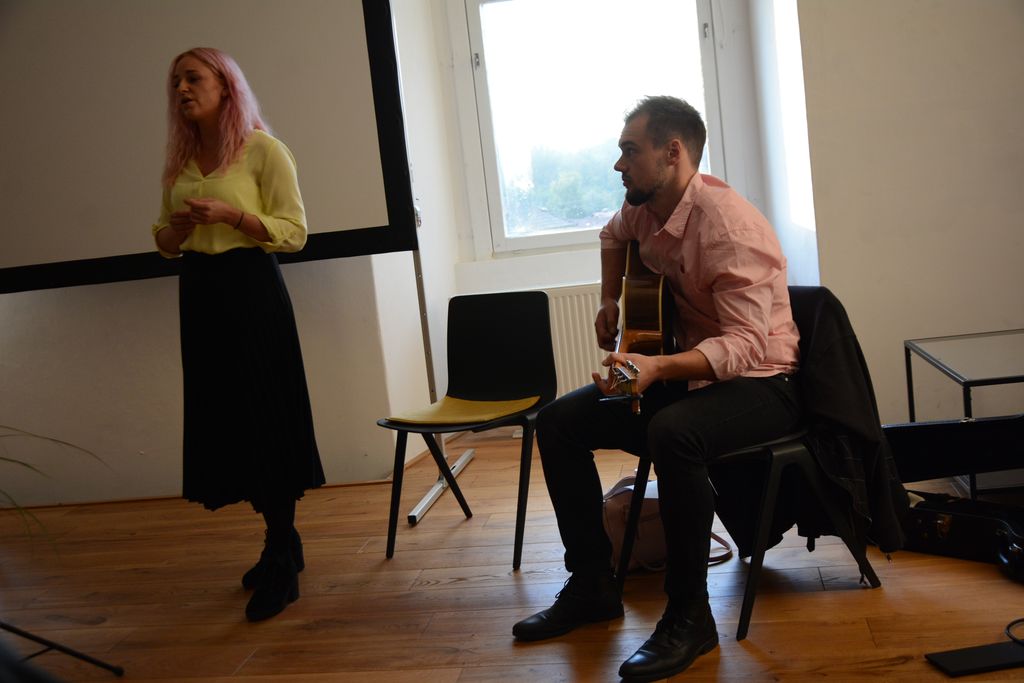 Veliko sta k zares lepemu kulturnemu dogodku v zahajajočem soncu, ki se je poigravalo z oblaki in poljubljalo obronke Krvavca, pripomogla glasbenika Neža Grkman s petjem in Anže Babnik z igranjem na kitaro.