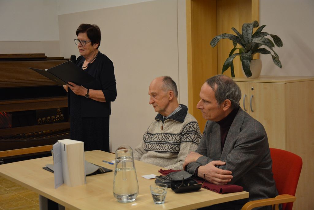 Urednika Bibliografije je na začetku kulturnega dogodka pozdravila in ju predstavila predsednica Društva sv. Jakob Kamnik dr. Marjeta Humar.