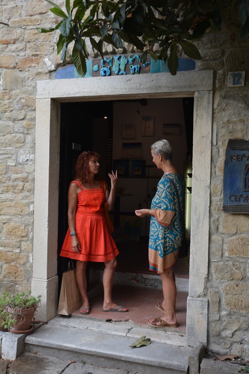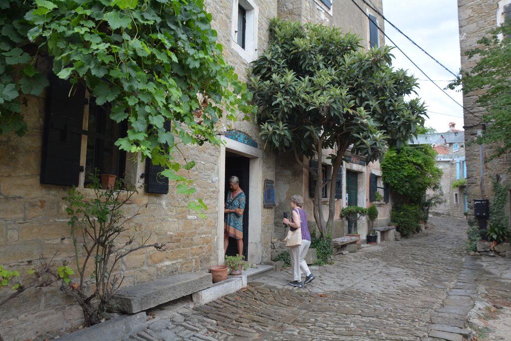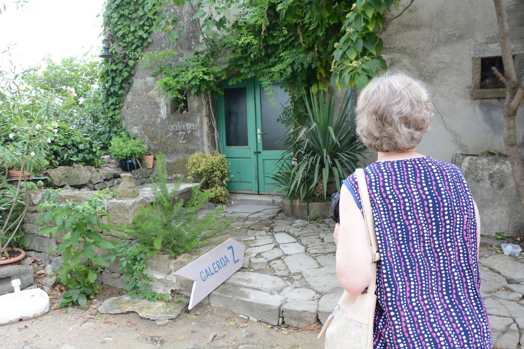 Zaman sem pritisnil na vrata baročne cerkve sv. Marije, sv. Vida in sv. Modesta iz druge polovice 18. stoletja. Vrata so, kot pri drugih cerkvah v hrvaški Istri, bila zaprta. Ni mi preostalo drugega, kot da svojo pozornost namenim starim istrskim hišam, njihovim značilnim gradbenim prvinam, pomembnejšim stavbam. Prodajalne me niso kaj dosti mikale, bolj Marto. Radovednost, kaj je v prvem nadstropju večje hiše z imenitnimi stebri, ob katerih so se fotografirala brhka dekleta, na zidcu pa so bile lepe rože, me je še enkrat ponesla do te hiše.