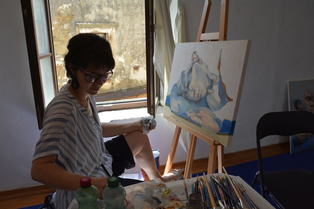 V veliki sobi na koncu prvega nadstropja sem ob oknu opazil slikarko. Opogumil sem  se, stopil do nje, in jo povprašal, kaj dela, čeprav mi je bilo prvi hip po opremi in slikarskih stojalih jasno, da tukaj nastajajo umetnine. Povedala mi je, da sodeluje na slikarski koloniji in da je iz Novega Sada, kjer je študirala slikarstvo na likovni akademiji. Dejal sem ji, da je tudi moj hčerka Barbi obiskovala likovno akademijo v Ljubljani, ki jo je zaključila z magisterijem iz ilustracije. Rekla je, da pozna Ljubljano, je tam že razstavljala svoja dela z novosadsko skupino slikarjev.