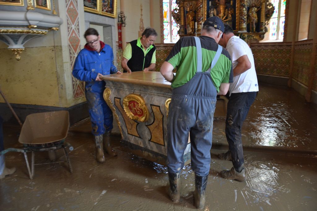 V lanskoletnih avgustovskih katastrofalnih poplavah v Sloveniji so bili močno prizadeti tudi cerkveni objekti v Občini Komenda. Med njimi še posebej gotsko-baročna podružnična cerkev sv. Boštjana v Mostah, ki sta jo več kot meter in pol visoko zalili reka Pšata in njen močno vodnati pritok Tunjščica. Najhuje jo je skupil oltar sv. Frančiška Ksaverija, oz. t. i. »Žejska kapela«, leta 1722 na severni strani prizidana k cerkvi s Kuenlovo sliko zavetnika misijonov in vrhnjo sv. Janeza Nepomuka. Visoka voda v cerkvi in vse, kar je prinesla, je spodnesla ta oltar, da se je prekucnil in pri tem utrpel hude poškodbe. Obnove se je po osušitvi oltarja lotilo Restavratorstvo Legan iz Stranske vasi pri Žužemberku, ki je zaslužno že za mnoga lepa obnovitvena dela v vseh štirih cerkvah komendske župnije. Med njimi tudi novi leseni tabernakelj v župnijski cerkvi sv. Petra.