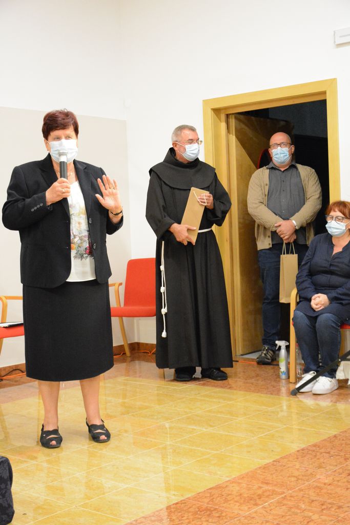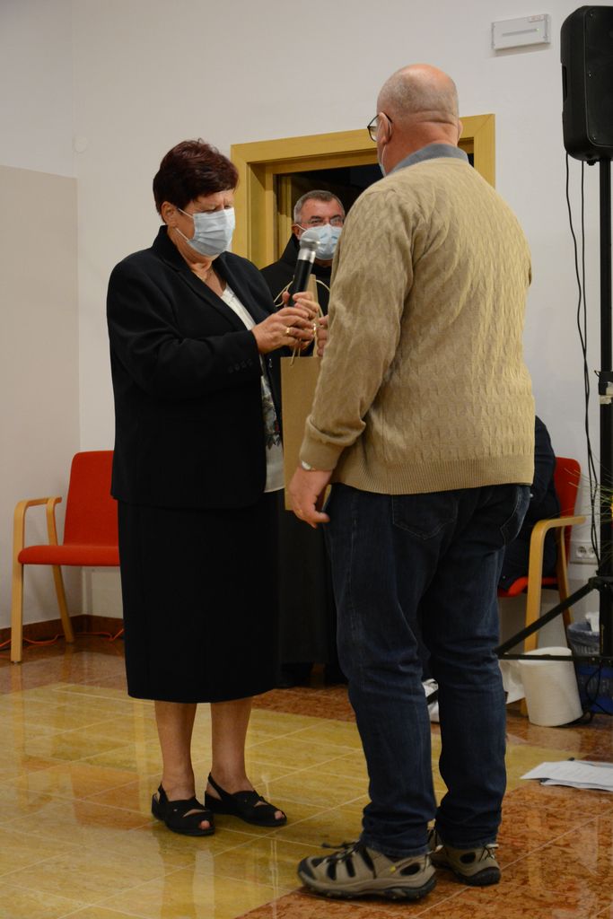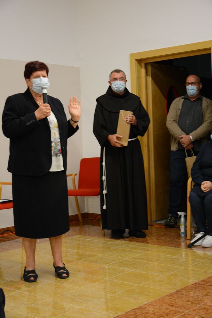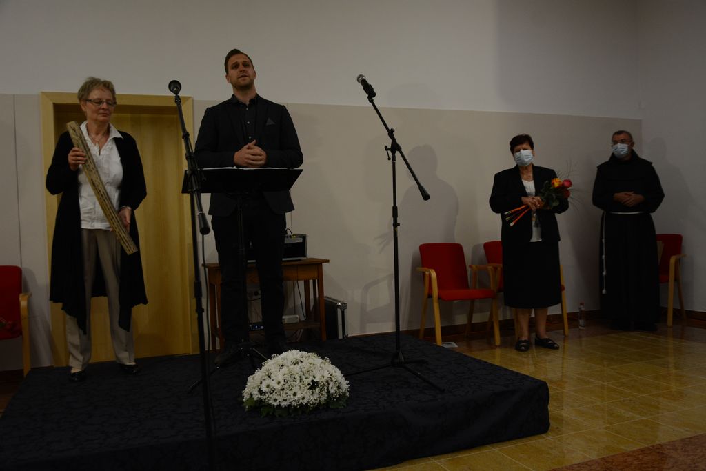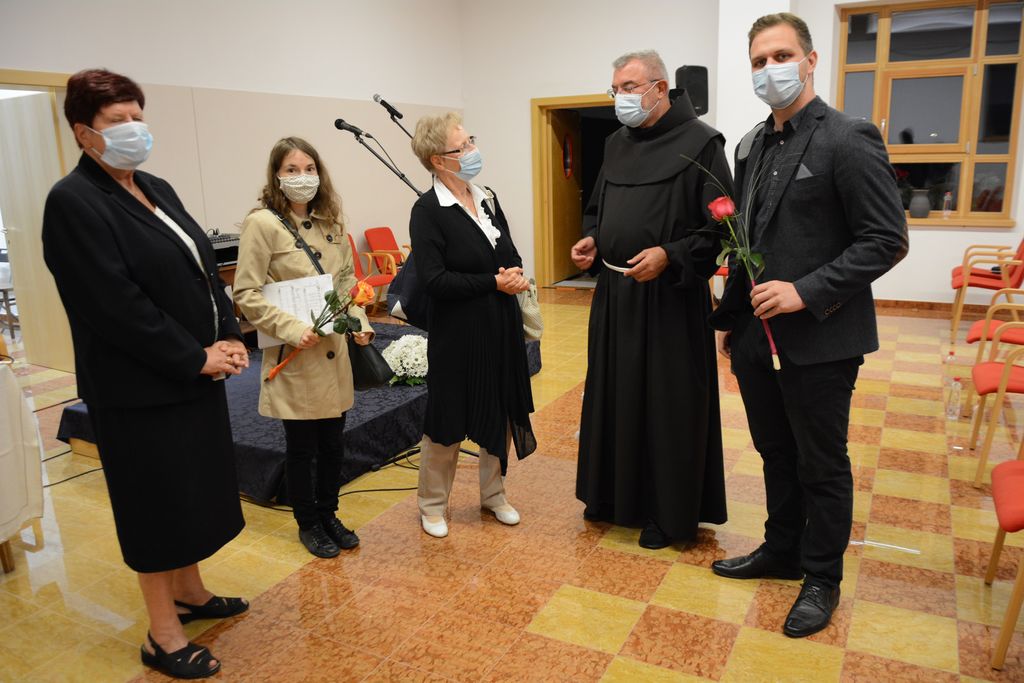 Na koncu se je dr. Marjeta Humar zahvalila vsem nastopajočim in udeležencem zares lepega kulturnega večera, pa tudi gostitelju gvardijanu p. Cirilu Božiču in Janezu Repanšku, ki je skupaj s p. Cirilom pripravil dvorano. Nastopajoči, p. Ciril Božič in Janez Repanšek so v zahvalo dobili lep šopek rož.