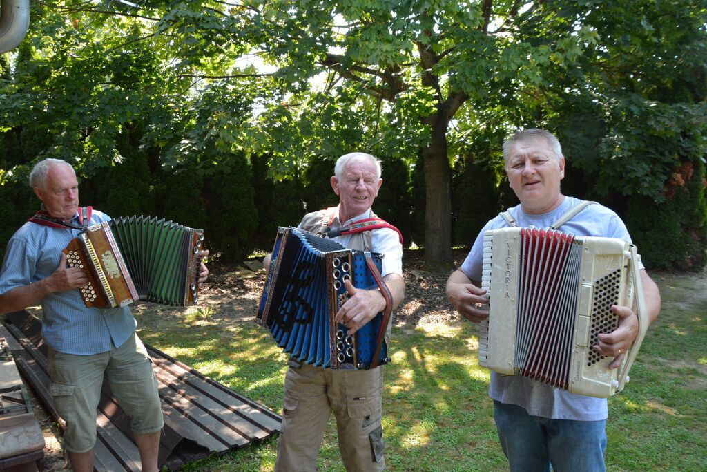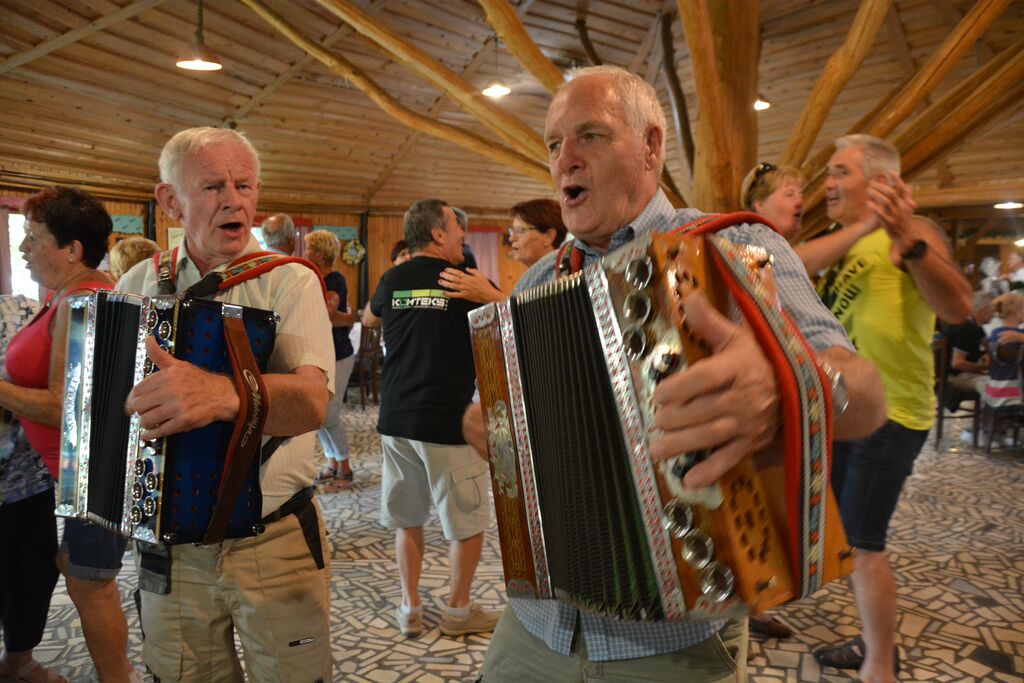 Najprej pa so jih, kot se za Medžimurce spodobi, gostitelji nadvse prijazno sprejeli in obilno pogostili. Seveda ni manjkala harmonika. Domačemu harmonikašu sta se kmalu, ko sta se, kot drugi, okrepila ob mizi, polni mesnih in sladkih dobrot, pridružila komendska harmonikaša Niko Zalaznik in Henrik Lamovšek – Henček. Po kozarčku izvrstnega vina znamke goričanec so igrali in peli tako slovenske kot medžimurske viže. Jezik pa za vse ni bil nikakršna ovir, saj se tukajšnji Hrvati in bližnji Slovenci pogosto srečujejo na družabnih, zabavnih in kulturnih srečanjih, se tudi poročajo med seboj.