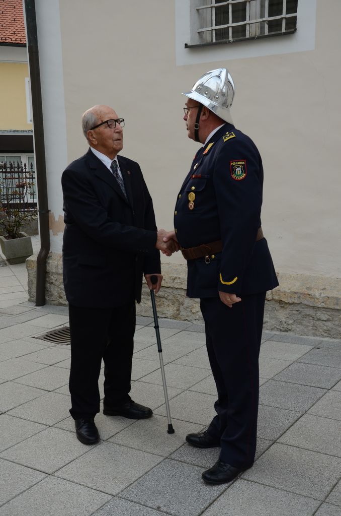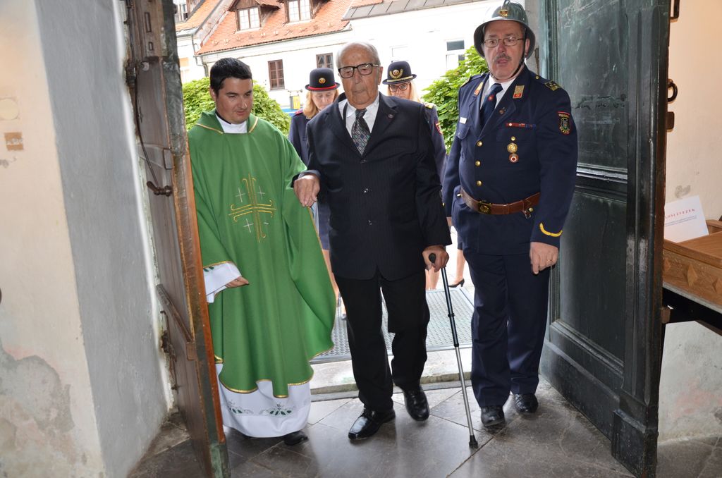 Tokrat, to lepo sončno jutro, so se mu gasilci Gasilske zveze Kamnik z nekdanjim poveljnikom te zveze  Janezom  Repanškom in člani PGD Križ s predsednikom Gasilske zveze Komenda Jožetom Sušnikom za to zahvalili na ta način, da so v velikem številu (103) prišli k maši, pred njo in po njej pa jubilantu pripravili slavnostni »špalir« s praporščaki in prapori vred. Stoletnik Jože se jim je za to pozornost ves ganjen zahvaljeval. Prav posebej za dobre želje, izrečene po maši pri pogostitvi na župnijskem vrtu v Kamniku.