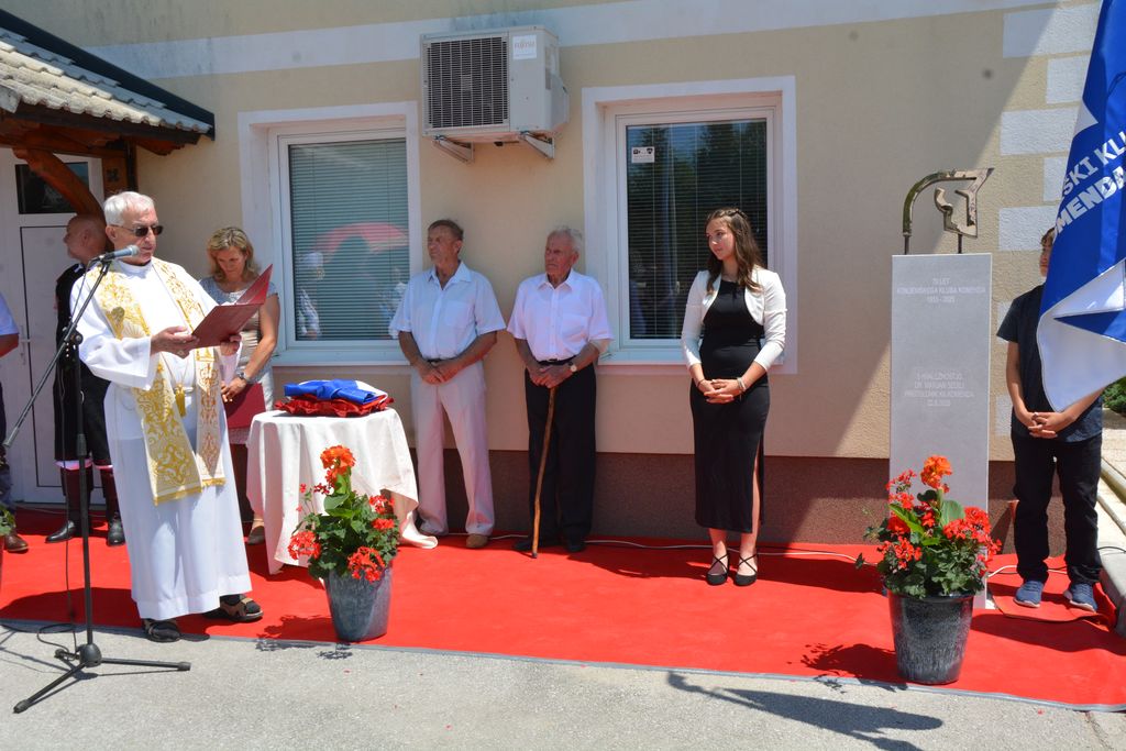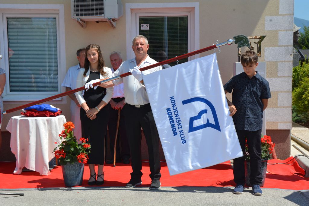 Jubilejno spominsko obeležje sta odkrila najstarejši ustanovni član kluba Marko Zadrgal in član UO Konjeniškega kluba Komenda Janez Jerovšek. Blagoslovil ga je, kot tudi novi prapor kluba, prošt Jožef Lap. Vodstvu kluba je z besedami »Naj se to res uresničuje!« zaželel uresničitev vsega, kar so tega dne lepo povedali. Izpuščeni beli golob pa naj bo znamenje miru ne le znotraj kluba, marveč »še naprej prijateljstva in ljubezni«, je zaželela povezovalka programa.
