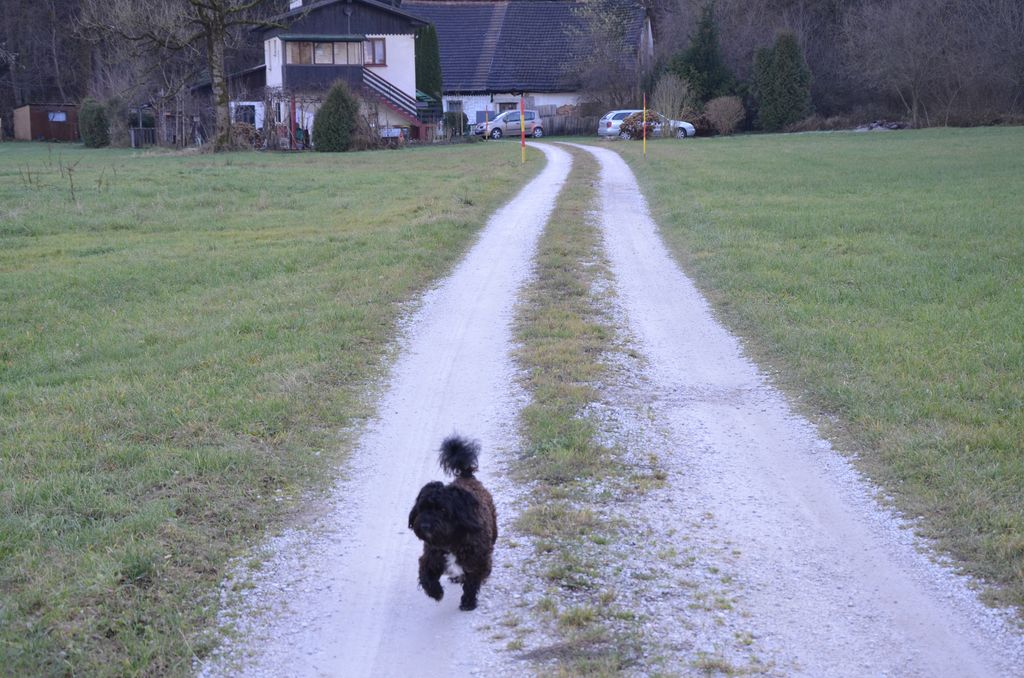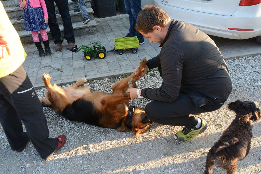 Zadnje čase je nenehno »prosil«, da ga spustiva ven. Res sva ga, a običajno na ta način, da sva mu pritrdila ovratnico, nanjo pa na predlog sina Klemena napisala številko Martinega mobitela, če bi se slučajno izgubil. Sam sem ga vedno peljal na sprehod z vrvico, pritrjeno na ovratnico. Tako sva naredila, ker je enkrat sam odtacal prav do Mlinčkov, drugič je bil že čisto blizu kitajske restavracije Hongkong v Mostah, tretjič pa v južnem delu te vasi, kjer je »delal družbo« sorodničini psički. K sreči je opazila, da ima na ovratnici zapisano številko mobitela, je poklicala nanjo, da je Marta takoj prišla ponj.