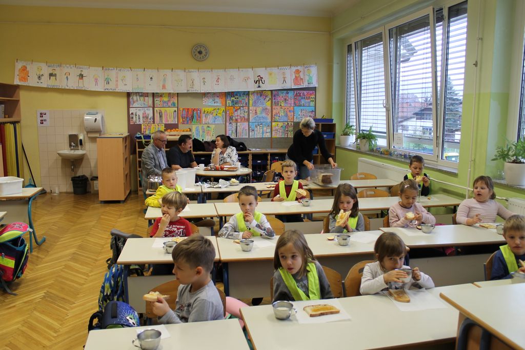 V petek, 15. novembra, je v šolah in vrtcih po Sloveniji zopet potekal Tradicionalni slovenski zajtrk. V Vrtcu Mehurčki sta se otrokom pri zajtrku pridružila župan Stanislav Poglajen in direktorica občinske uprave, mag. Majda Ravnikar, v šoli pa je z učenci prvega razreda zajtrkoval podžupan Igor Štebe, ki se mu je v nadaljevanju pridružil tudi župan. Sestavine tradicionalnega zajtrka - mleko, kruh, maslo, med in jabolka, prihajajo iz lokalnega okolja. Prav to, da je hrana iz lokalnega okolja najbolj zdrava in da je treba krepiti to zavedanje, je osnovno sporočilo tega dogodka, ki je letos potekal že deveto leto zapored.