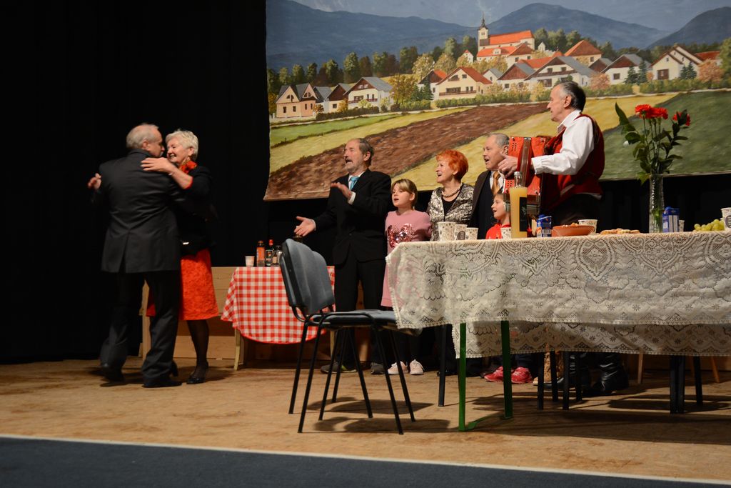Skeč o zlati poroki, ki sta jo Marija in Janez Kern v resnici že praznovala 2021-tega leta – avtorica je tudi nastopila v glavni ženski vlogi – je spodbudil Marinko Crnkovič in Olgo Gros, da sta ta jubilej uprizorili v enodejanki, v kateri ni manjkalo dovtipov in hudomušnosti. Sami sta tudi napisali besedilo.