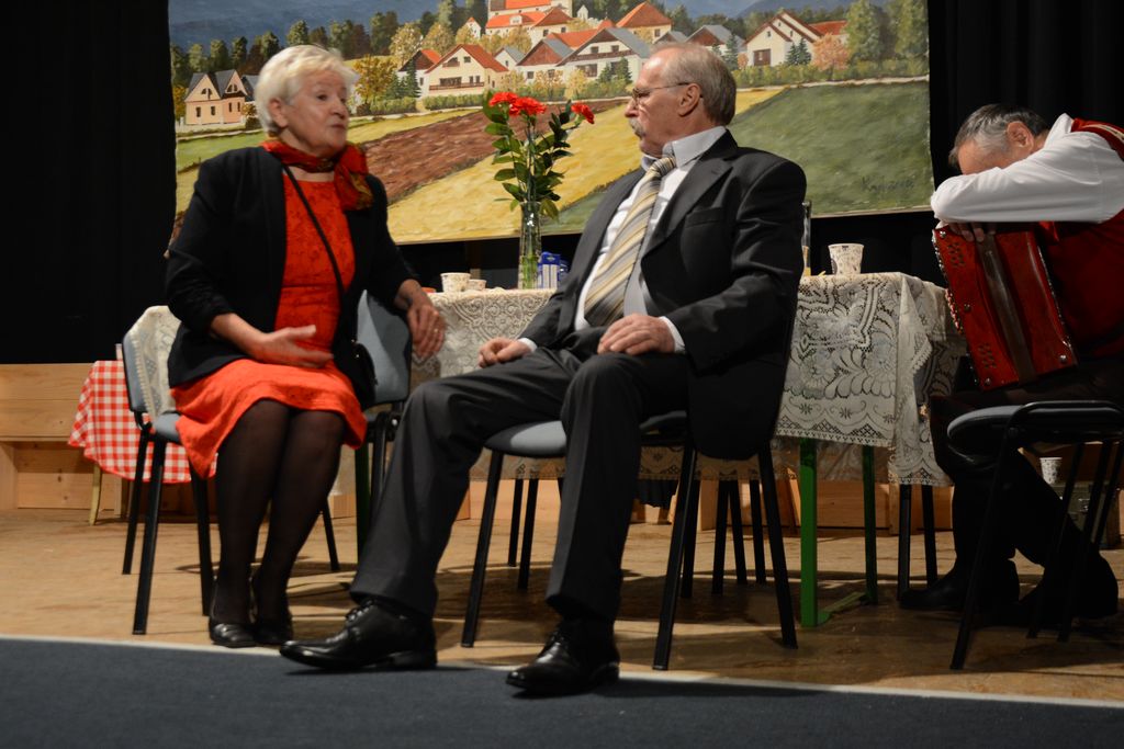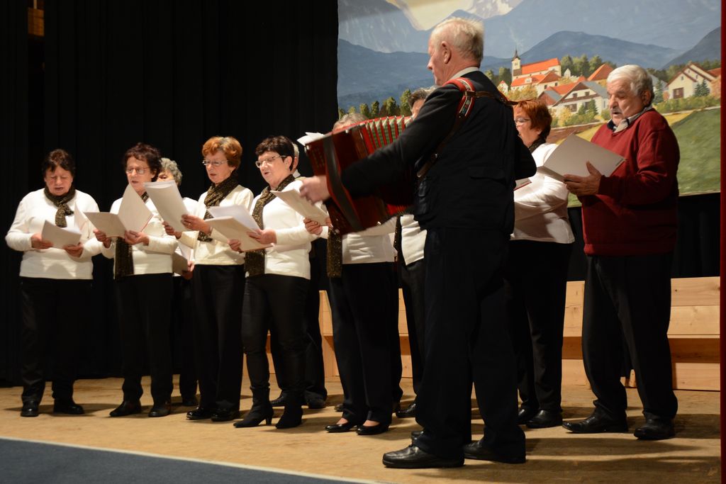 Za njim so na odru, ki ga je lepšala naslikana panorama Komende z napisom prireditve in rdeče rože Vrtnarije Gašperlin, prvi nastopili domači upokojenci. Njihov zbor je pod vodstvom Ignaca Gorjanca zapel pesmi Dekle na vrtu in Kaj je ljubezen.