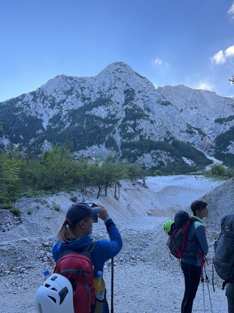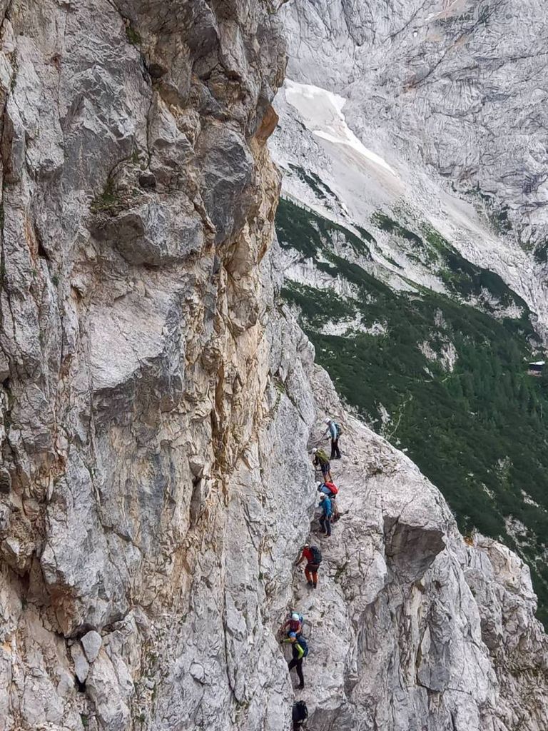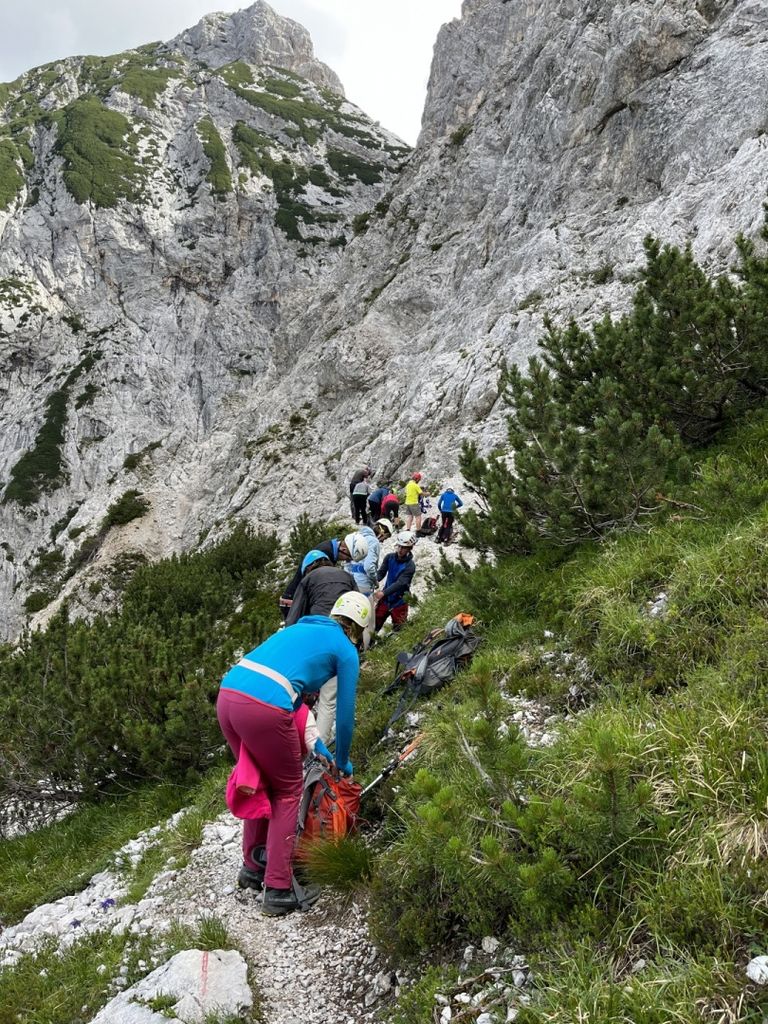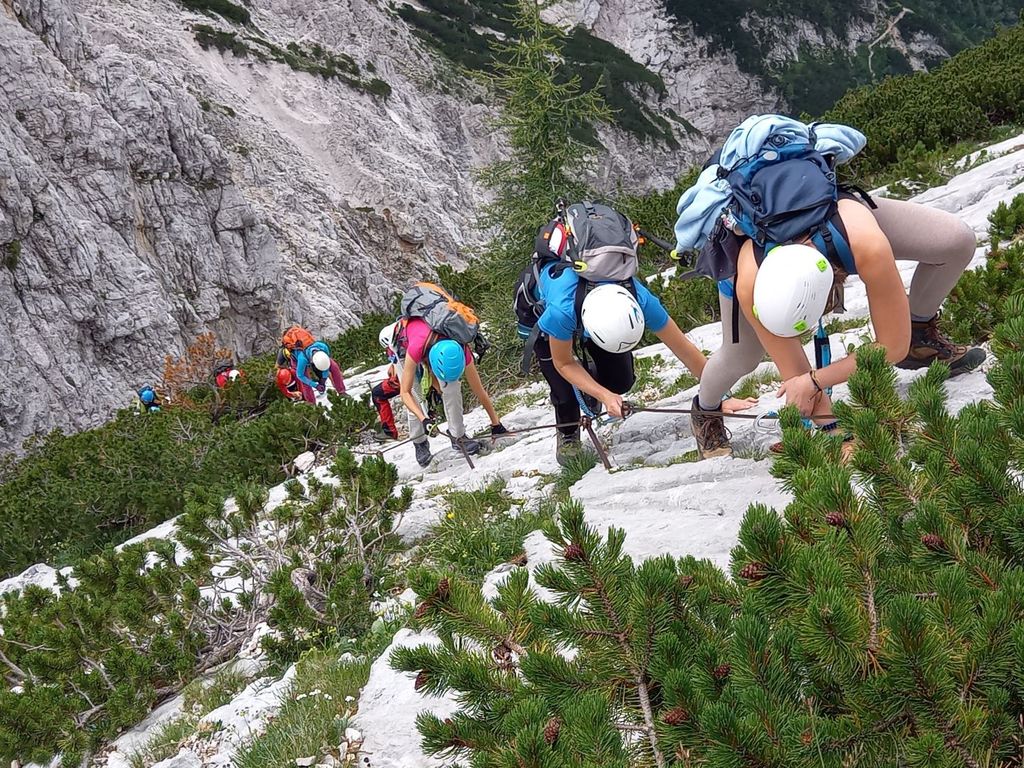 Ture se je udeležilo 9 žensk, 4 moški in 1 otrok, Leon. Ekipa se je hitro vživela (pri toliko ženskah ne gre drugače) in tudi hitro segrela. S seboj je vsak udeleženec moral imeti čelado in varovalni komplet. Že zelo hitro smo se prvič ustavili, da smo se pripravili (čelada) na prve jeklenice na Slovenski poti. Na tej poti smo se »spoznavali« s skalami, jeklenicami in tudi vrtoglavico(vsaj ena).