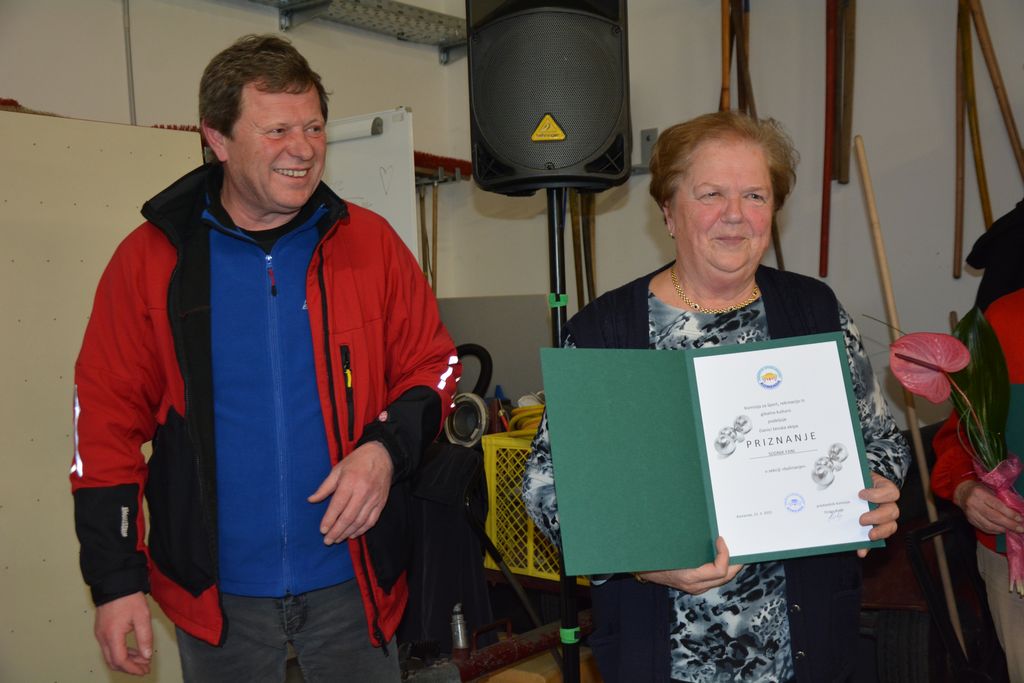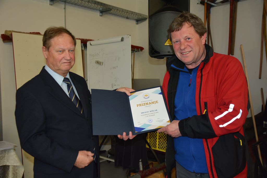 Drago Kolar pa je podelil priznanja za delo in dosežke na športnem področju: Filipu Železniku (pohodništvo, kolesarstvo in prstomet), Franciju Omerzuju in Srečku Lahu za osvojeno drugo mesto na tekmovanju dvojic gorenjske regije v tenisu ter članicam Balinarske sekcije za osvojeno drugo mesto na državnem prvenstvu v balinanju lani v Komendi (Ivanki Žulič, Fani Sodnik, Dani Misja in Andreji Rojko).