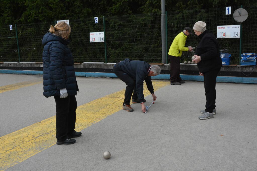 Šestnajst najpogumnejših in zoper mraz dobro »opremljenih« balinarjev in balinark se je »po štartu« ob 8.30 pogumno podalo v tekmovanje za zelo privlačno nagrado – velikonočne dobrote. Pri tem jim je vso srečo zaželel sam predsednik DU Komenda Saša Lenarčič, ki je najboljšim štirim parom ob 13. uri tudi podelil mikavne in zelo okusne »dobitke« ter jim čestital. Med njimi še posebej skorajda že 88-letni Mariji Smolnikar z Gmajnice, ki je v paru z Dani Misja osvojila četrto mesto. Zelo se je veselila nenadejanega uspeha.