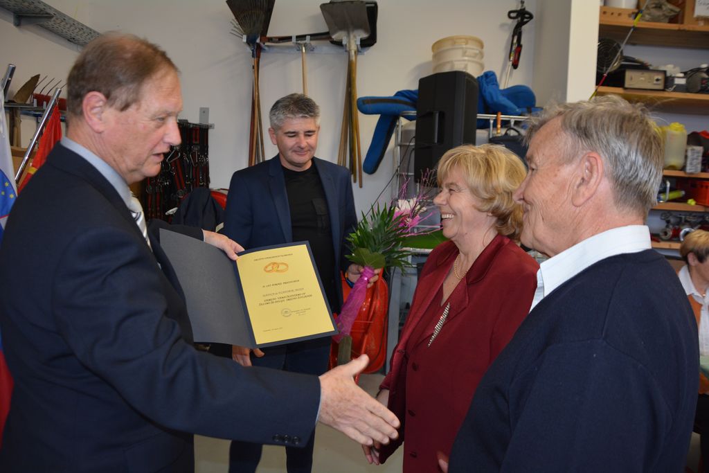 Saša Lenarčič in župan Jurij Kern sta čestitala navzočim zakonskim parom za 50 let zakonske zvestobe (Danici in Vladimirju Misja iz Komende, Kati in Francu Plevelu iz Nasovč, Mileni in Tomu Petkovšku ter Nevenki in Antonu Pestotniku, oba s Križa, Štefki in Dragu Oblaku s Podboršta ter Majdi in Francu Drolcu z Gore, za 60 let zakonske vezi pa Martini in Franju Verhovniku iz Komende ter Jožefi in Janku Kuharju iz Most.