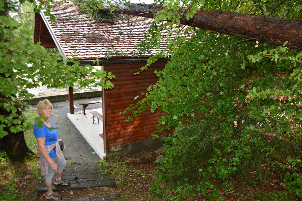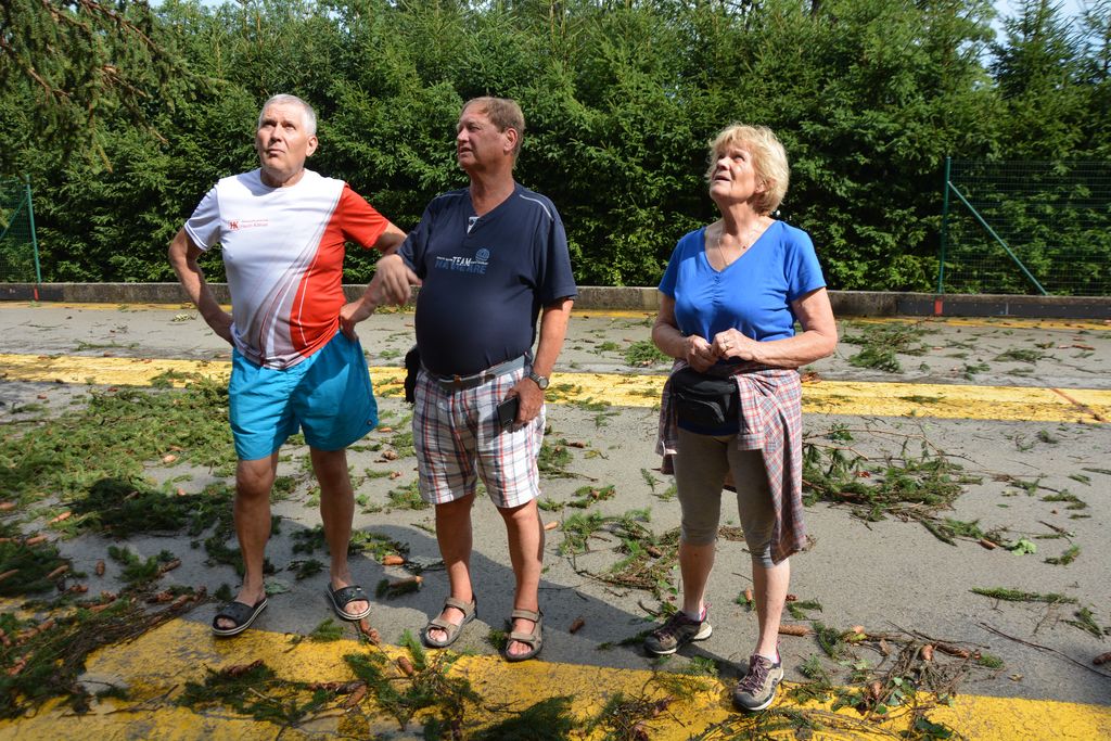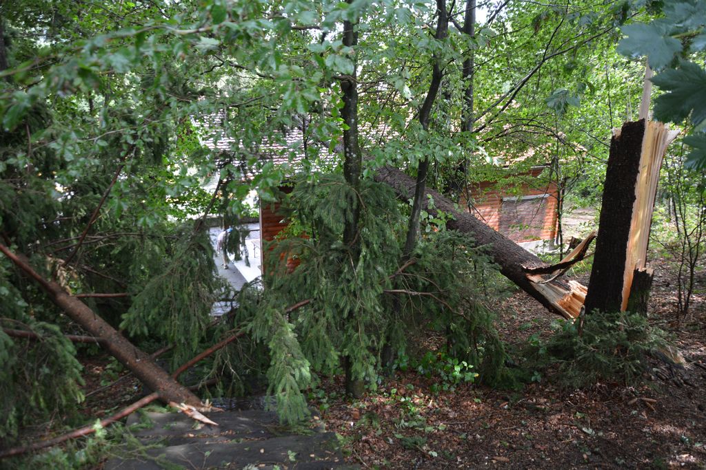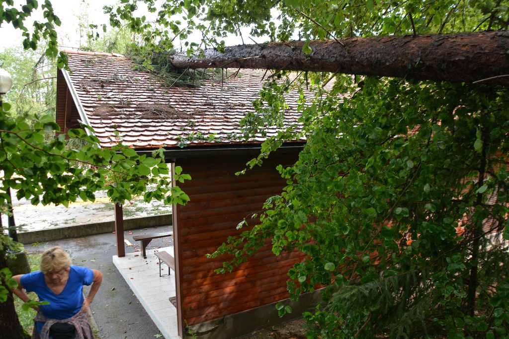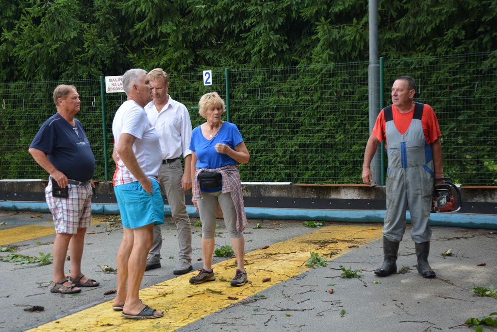 Nato sem šel navijat za našega vrhunskega kolesarja Tadeja Pogačarja, da bi tokrat po včerajšnjem kronometru, na katerem je bil drugi, premagal najhujšega tekmeca za končno zmago Danca Jonasa Vingegaarda. Ne dolgo, saj me je poklical sodnik na tekmah Balinarske sekcije pri DU Komenda Tomaž Hacin, naj pridem fotografirat smreko, ki jo je močan veter podrl na brunarico pri Balinišču Komenda v bližini Planinskega doma Komenda. To sem naredil nemudoma, da ne bi zamudil zadnjih kilometrov vožnje našega Tadeja. Spotoma se mi je ponujala zelo žalostna podoba naše občine, ko sem videl, kako veliko škodo je povzročil vihar. Voziti sem moral zelo pazljivo mimo vsega, kar je ležalo na cesti. Ko sem prišel do Balinišča Komenda, kar nisem mogel verjeti: velika smreka je visela daleč na igralne steze, zagozdena v samo streho brunarice. Še sreča, da je njen vrhnji tram zdržal njeno težo, je ni podrl ali prizadejal hujše škode, kot je že bila. Tam sta bila že predsednica Balinarske sekcije Ivanka Žulič in sodnik Tomaž Hacin. Kmalu je prišel še Marjan Potočnik, podsekretar za urejanje prostora na Občini Komenda, za njim pa še predsednik DU Komenda Saša Lenarčič. V bližini je Štefan Kociper obžagoval drugo smreko, ki jo je veter podrl blizu brunarice, prav tako odlomil vrh še ene smreke. Jeklena vrv in drugo, s čimer so se otroci spuščali, ko so bili starši gostje Planinskega doma, je bila na tleh. Pravo razdejanje na robu gozda ob Planinskem domu Komenda. Kakšno je po naši občini, sem videl, ko sem se po posnetih fotografijah na kraju Balinišča Komenda počasi peljal domov. Spotoma sem srečal komendske gasilce, ki so se peljali proti Balinišču Komenda. Že prej sem slišal, kako so na raznih koncih lastniki z motornimi žagami žagali in odstranjevali podrto drevje. Bilo je, kot da bi bil na sečnji v gozdu.