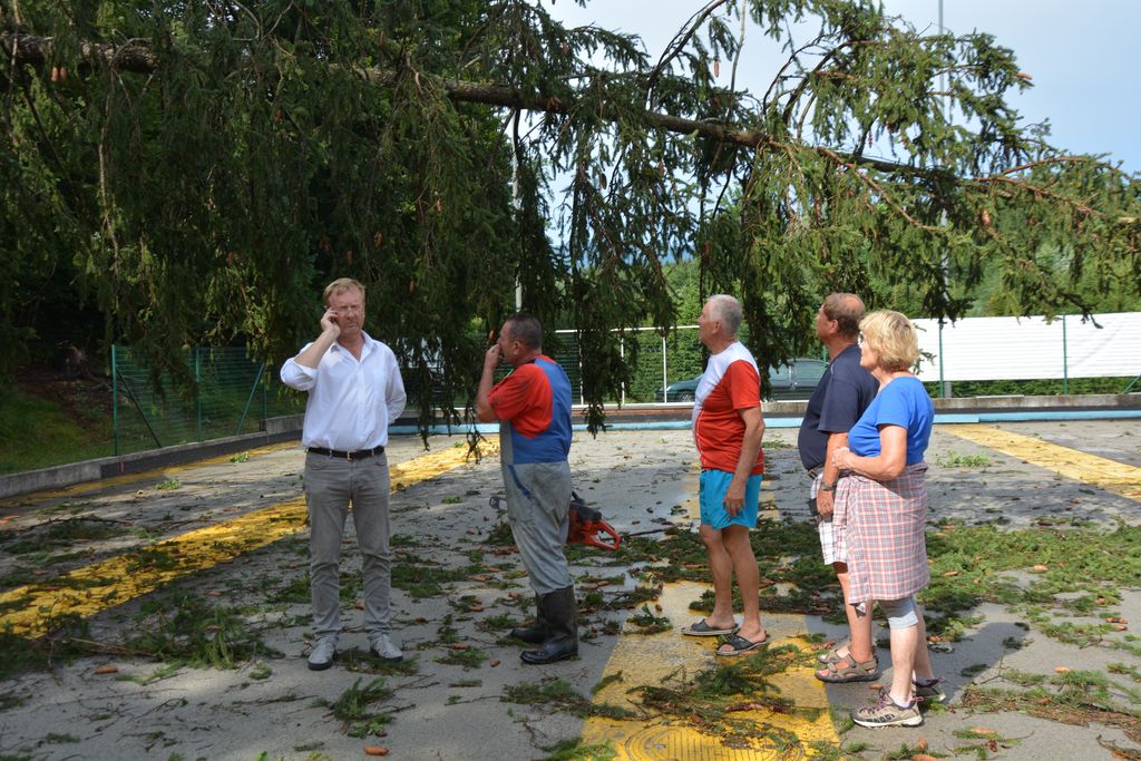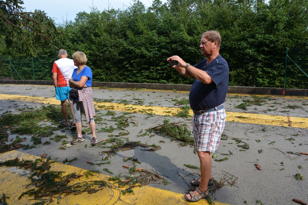 Ko je Tadej pripeljal skozi cilj, sem šele šel pogledat okrog hiše, kakšne posledice nam je prizadejal vihar. Videl sem soseda Sreča, kako pregleduje streho svoje hiše. Prav vrtoglav pogled. V bližini je »pela« motorna žaga. Pozneje sem videl, zakaj: zaradi podrtega sadnega drevja. Zelo sem se razžalostil, ko sem videl, da mi je silovit veter podrl ravno tisto jablano – idared, ki bi letos najbolj obrodila, vendar sem se pomiril, ko sem pri televizijskih poročilih videl, kako hudo škodo so utrpeli ljudje marsikje po Sloveniji. Narava se nam očitno maščuje, ker je nismo dovolj spoštovali, mi je bilo takoj jasno. A zastonj opozarjanja klimatologov. Tadej si je želel dežja, a ga ni bilo, mi pa smo imeli pravi piš, skorajda orkanski veter, dežja pa niti ne tako veliko, saj je dežne kapljice nosilo skorajda naravnost po zraku, pa še marsikaj drugega. Vse to nam daje vedeti, kako majhen je človek, ko se razbesni narava. Je pa tudi velik, ko vidimo, kako gasilci (tudi v naši občini) in drugi dobri ljudje pomagajo prizadetim v neurju. Tudi pri podrti smreki pri Balinišču Komenda so. Nanje se lahko zanesemo. V vrtovih je res veliko škode, a je ta neprimerljiva z izgubo življenja (Bled!) in veliko gmotno škodo, ki jo je letos toliko po Sloveniji po teh silovitih neurjih. Res dolgo, vroče poletje, pa tudi takšno, zaradi katerega le malo noči dobro spimo. Preizkušeni v svojih močeh, ko vidimo, kako nebogljeni smo, kadar nad nas privihra »huda ura«. Nad našo občino je bila tokrat zares takšna. Hkrati pa opozorilo: človek, velik si, ko ustvarjaš, načrtuješ in gradiš, a že jutri ti lahko to uničijo naravne in druge katastrofe. Ali pa celo sam sebi in drugim.