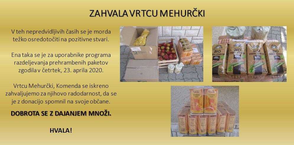 Ustanova Petra Pavla Glavarja se iskreno zahvaljuje vrtcu Mehurčki, Komenda za njihovo radodarnost in da se je z donacijo spomnil na svoje občane.
