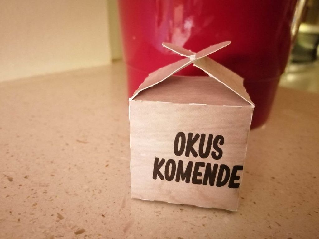 Sledila je pogostitev v vzdušju božiča, ki je bilo namenjeno medsebojnemu druženju in sladkanju z dobrotami. Seveda je potrebno omeniti tudi novo kulinarično dobroto izpod rok gospe Olge Hace, ki smo jo ta večer prvič degustirali. Gospa Hace si je vzela čas, skrbno pripravila recept iz samih zdravih sestavin in jo poimenovala Glavarjeva kroglica. Dobili smo jo v lični škatlici z napisom »Okus Komende«.