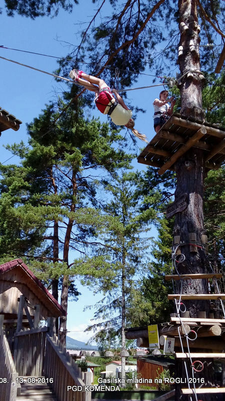 Zadnji dan, pa smo se tako kot lani, ustavili v Avtocampu Menina v Savinjski dolini, kjer so vsi uspešno preplezali adrenalinski park, se okrepčali z pizzami in se polni vtisov vrnili v Komendo.
