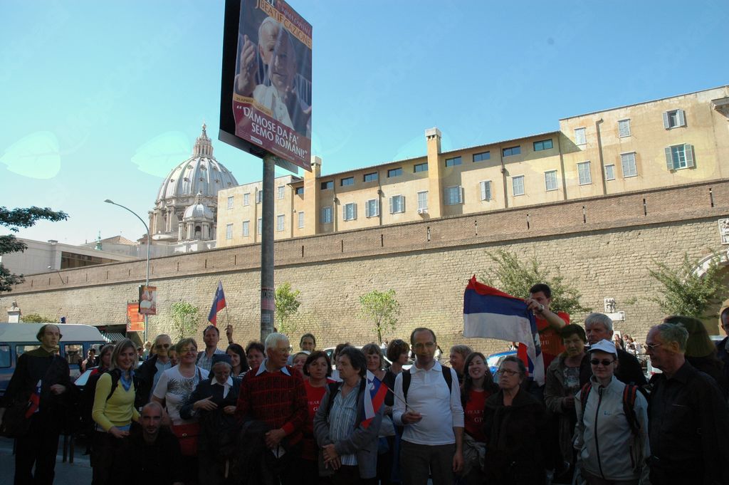 Obudimo še enkrat v besedi in fotografiji spomin na ta veliki dogodek, romanje Slovencev na beatifikacijo v organizaciji turistično-romarskega urada Trud, njihovo srečanje s kardinalom dr. Francem Rodetom in njegovo mašo ter govor v cerkvi sv. Frančiška Ksaverija v Garbatelli (kardinalovi naslovni cerkvi), v kateri je Karol Wojtyla kot mlad duhovnik spovedoval, ter na samo slovesnost njegove razglasitve za blaženega. Slovenski romarji so se pri njej, kot zgovorno "govorijo" fotografije, zaradi izjemne množice romarjev "prebili" le do Ulice sprave. Kljub temu niso bili razočarani, saj so doživeli enkratno slavje, ko je bil na oltar povzdignjen njihov "ljubi papež", ki nas je dvakrat obiskal, v Rimu in po svetu pa se je srečal s številnimi Slovenci od naših najvišjih politikov do čisto preprostih ljudi, ki so ga želeli le videti, mu stisniti roko, dobiti njegov blagoslov.
