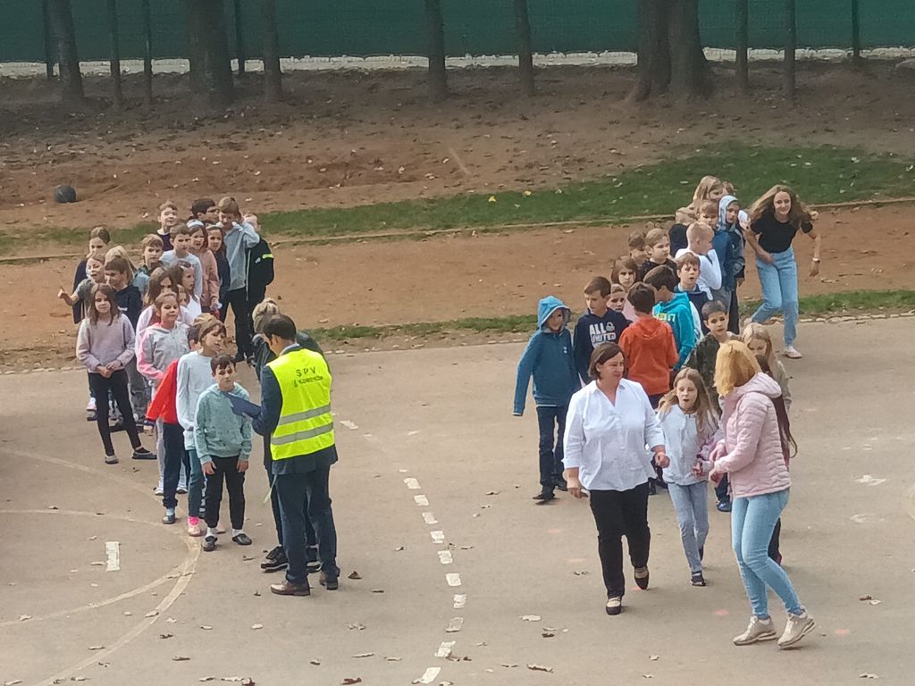 V sredo, 19. 10., smo izvedli še požarno vajo v šoli v Mostah, ki smo jo izpraznili v treh minutah po požarnem zvočnem signalu. Učenci so mirno, v urejenih kolonah skupaj z učitelji zapustili prostore, v katerih se je izvajal učni proces, in se zbrali na dogovorjenih mestih na šolskem igrišču. Zdi pa se, da so se še hitreje vrnili v stavbo, kjer se je po vaji pričel rekreativni odmor …