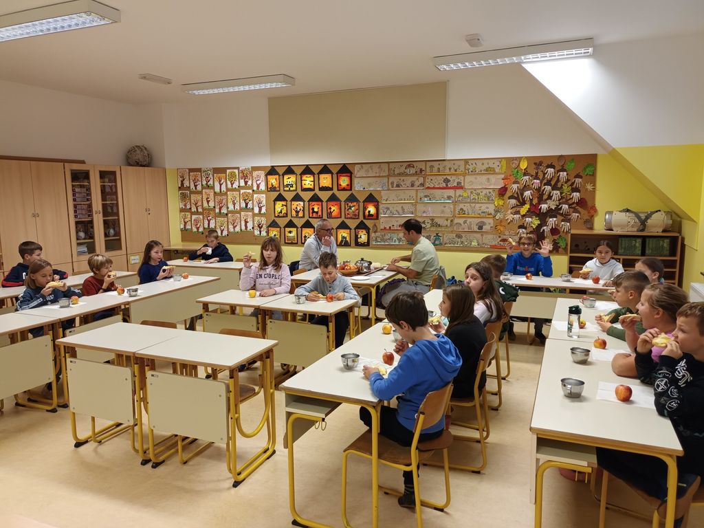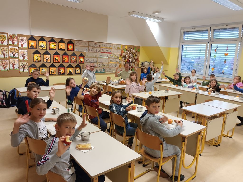 Tretji petek v novembru praznujemo dan slovenske hrane. Tudi na naši šoli je potekal tradicionalni slovenski zajtrk, letos s poudarkom na mleku. Četrtošolcem sta se pri zajtrku pridružila župan Slavko Poglajen in ravnatelj Uroš Križanič. Vsem ponudnikom se iskreno zahvaljujemo za dobavo svežih in domačih živil.