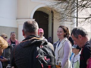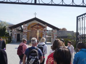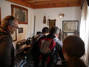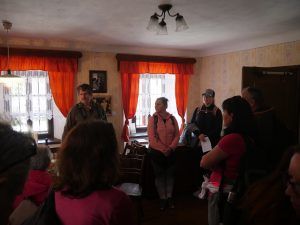 Po sladki pogostitvi smo se odpravili proti naslednjima kontrolnima točkama, ki pa sta bili že v Cerkljah – Plečnikovi vežici in rojstni hiši Ignacija Borštnika. Vodička Polona nam je povedala, od kod izvira ime Cerklje – da so v središču naselja včasih stale tri cerkve oziroma kot so takrat rekli tri cerkle. V rojstni hiši Ignacija Boršnika smo izvedeli nekaj več informacij o prvem slovenskem šolanem igralcu po katerem se danes imenuje osrednji slovenski gledališki festival in si ogledali, kje je preživel svoja otroška leta. Za hišo raste tudi potomka najstarejše vinske trte iz Maribora.
