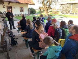 V zgodnji jutranji uri smo se vsi pohodniki zbrali pri ribniku Lahovče in se nato podali na športno-kulturno obarvano pot. Naša prva postojanka je bil čebelarsko - kmečki muzej v Spodnjem Brniku, kjer nam je gospod Franci Strupi predstavil svojo bogato zbirko čebelarskih in kmečkih pripomočkov ter nas poslušalce razvedril s hudomušnimi šalami. Marsikomu med nami so bili predmeti, ki so tam razstavljeni, popolna neznanka, nekateri pa so poznali njihov pomen in uporabo. Vsi smo se strinjali, da ima izredno bogato zbirko kmečkega orodja, pohištva, oblačil, čevljarskega orodja in čebelarskih pripomočkov, katero z veseljem razkaže obiskovalcem.