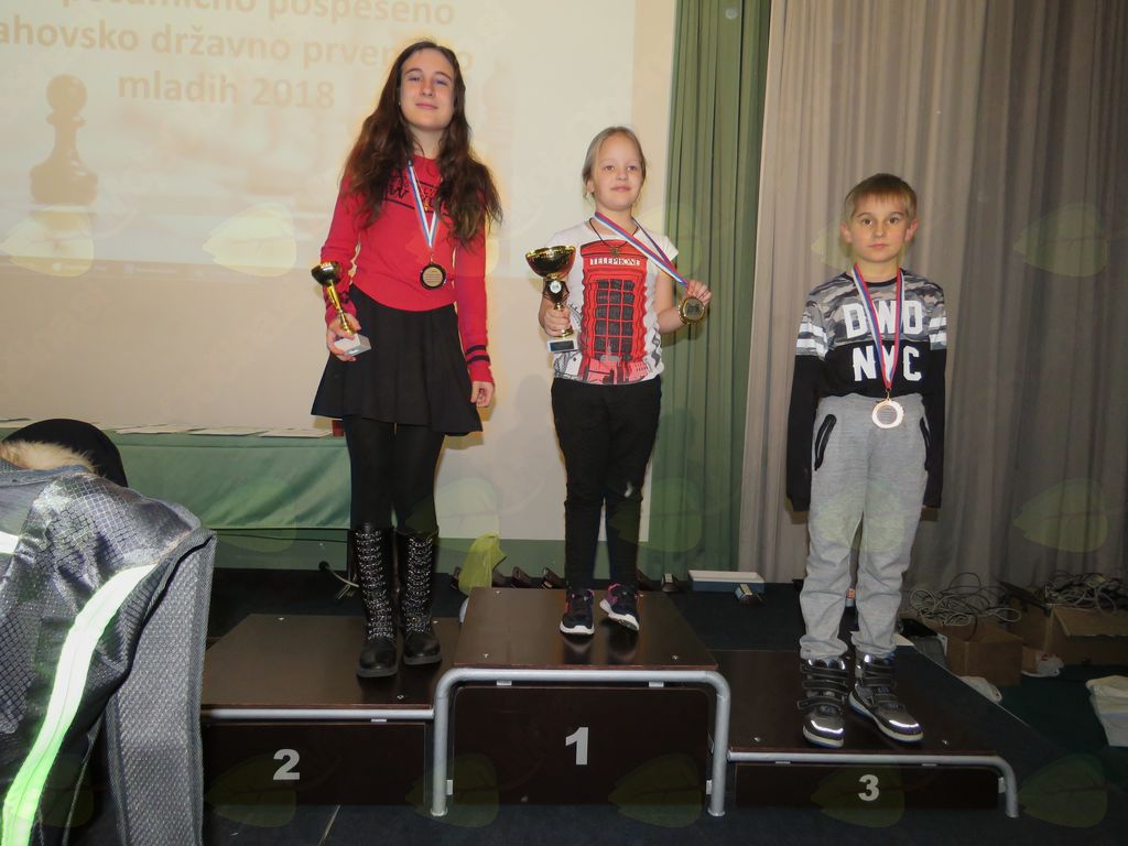 Mlada Inti MAČEK, članica Šahovskega kluba Komenda je postala državna prvakinja v pospešenem šahu v kategoriji deklic do 8 let, tako je v enem tednu osvojila dva državna naslova. Uspeh sta dopolnila Klara VIDMAR z osvojitvijo 3. mesta v kategoriji deklet do 16 let in Teo CIMPERMAN z osvojitvijo 3. mesta v kategoriji dečkov do 12 let.
