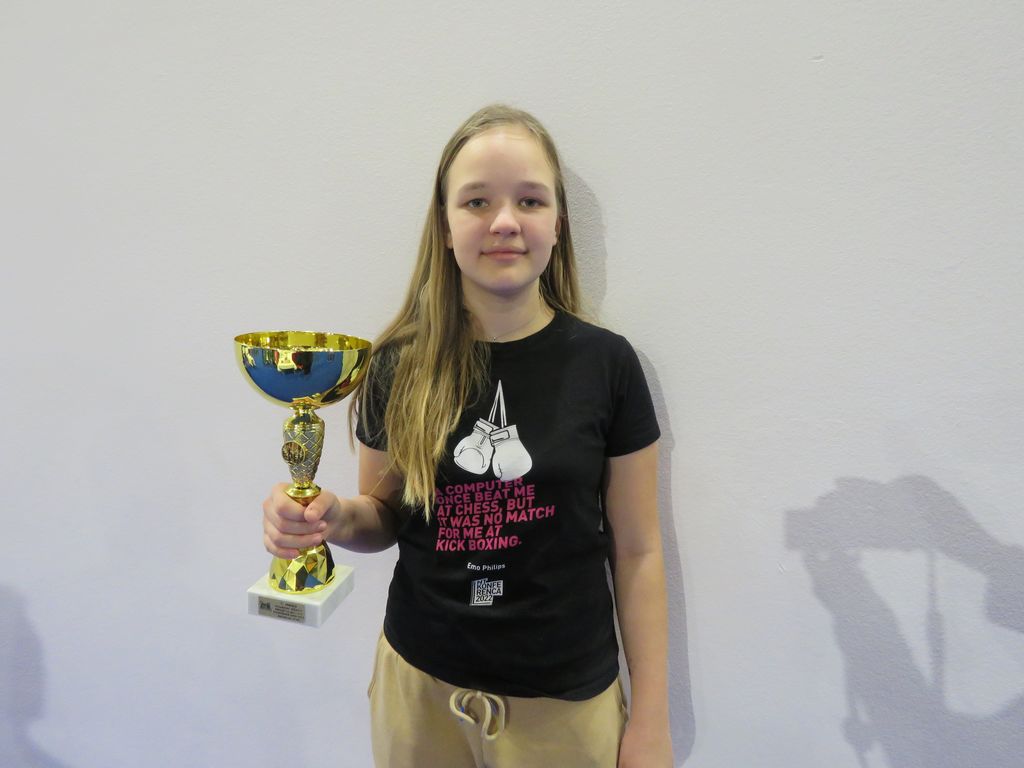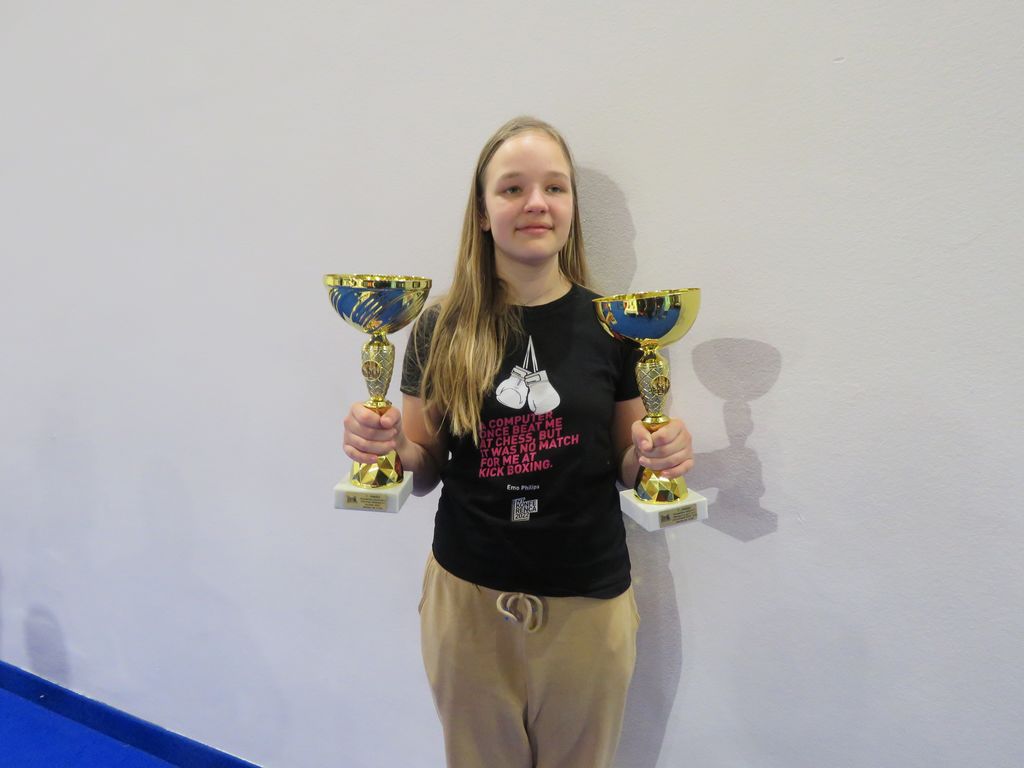 Na državnem prvenstvu mladih je Inti MAČEK osvojila kar dve prvi mesti tako v počasnem kot v pospešenem šahu.