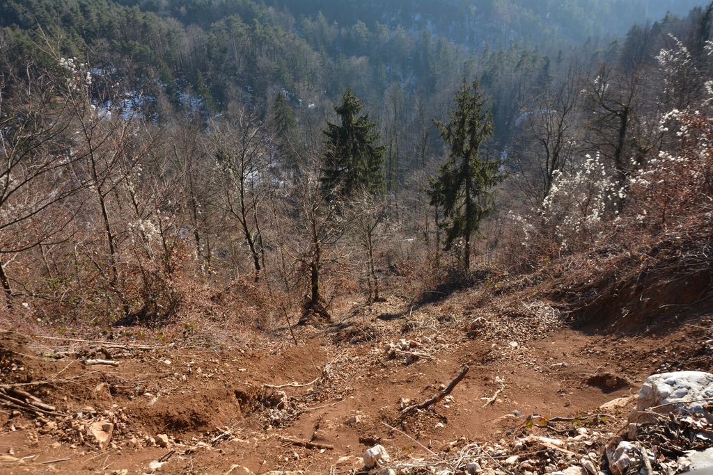 Od Flegarije naprej je veliko laže. Sonce vse močneje siplje prijetno rumenino na naju in v gozd. Hodim brez kape in jopice. Kljub temu začutim, kako mi počasi mezi po hrbtu. »Nič ne de,« si rečem, »saj imam majico in dodatno srajco v nahrbtniku.« Uživam v hoji, kot že dolgo ne. Celo tako zelo, da prezrem prve trobentice ob poti, mi jih pokaže brat Martin.