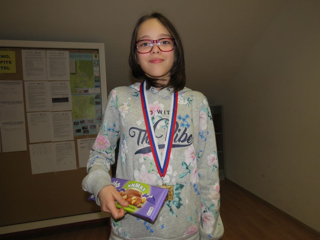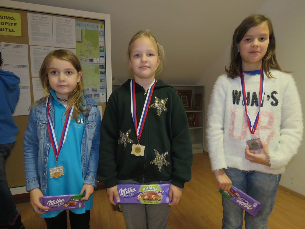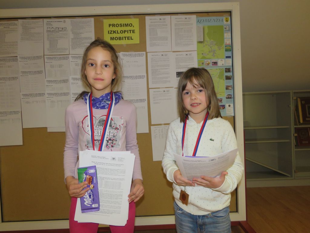 Skupina deklice do 8 let: zmagala je Sofia TIMAGINA (ŠD Mengeš-Trzin), 2. mesto Špela Petrušič (OŠ Nove Jarše).